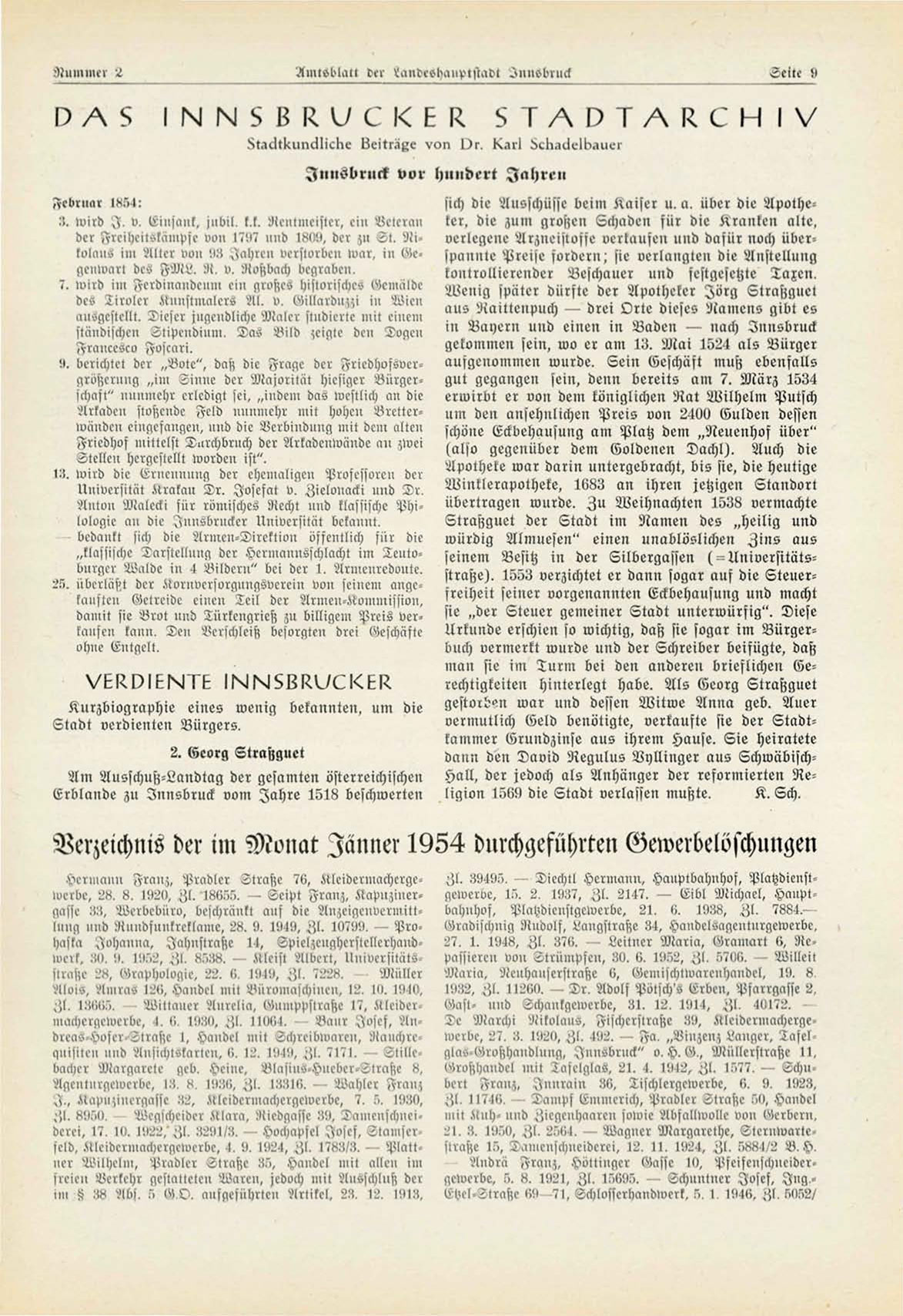 Verzeichnis der im Monat Jänner 1954 durchgeführten Gewerbelöschungen