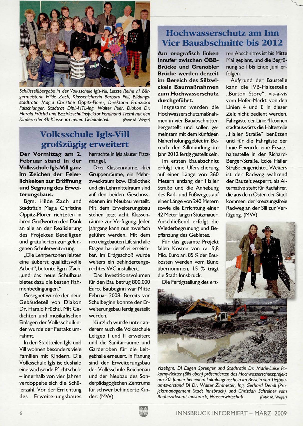 Schlüsselübergabe in der Volksschule Igls-Vill. Letzte Reihe v.l. Bürz u m Hochwasserschutz