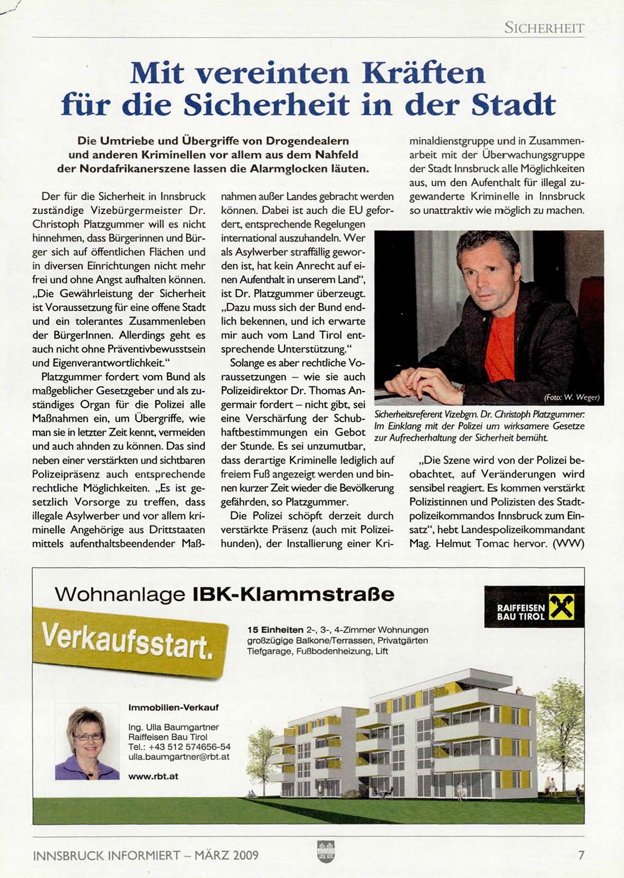 eine Verschärfung der Schub- Sicherheitsreferent Vizebgm. Dr. Christoph Platzgummer.