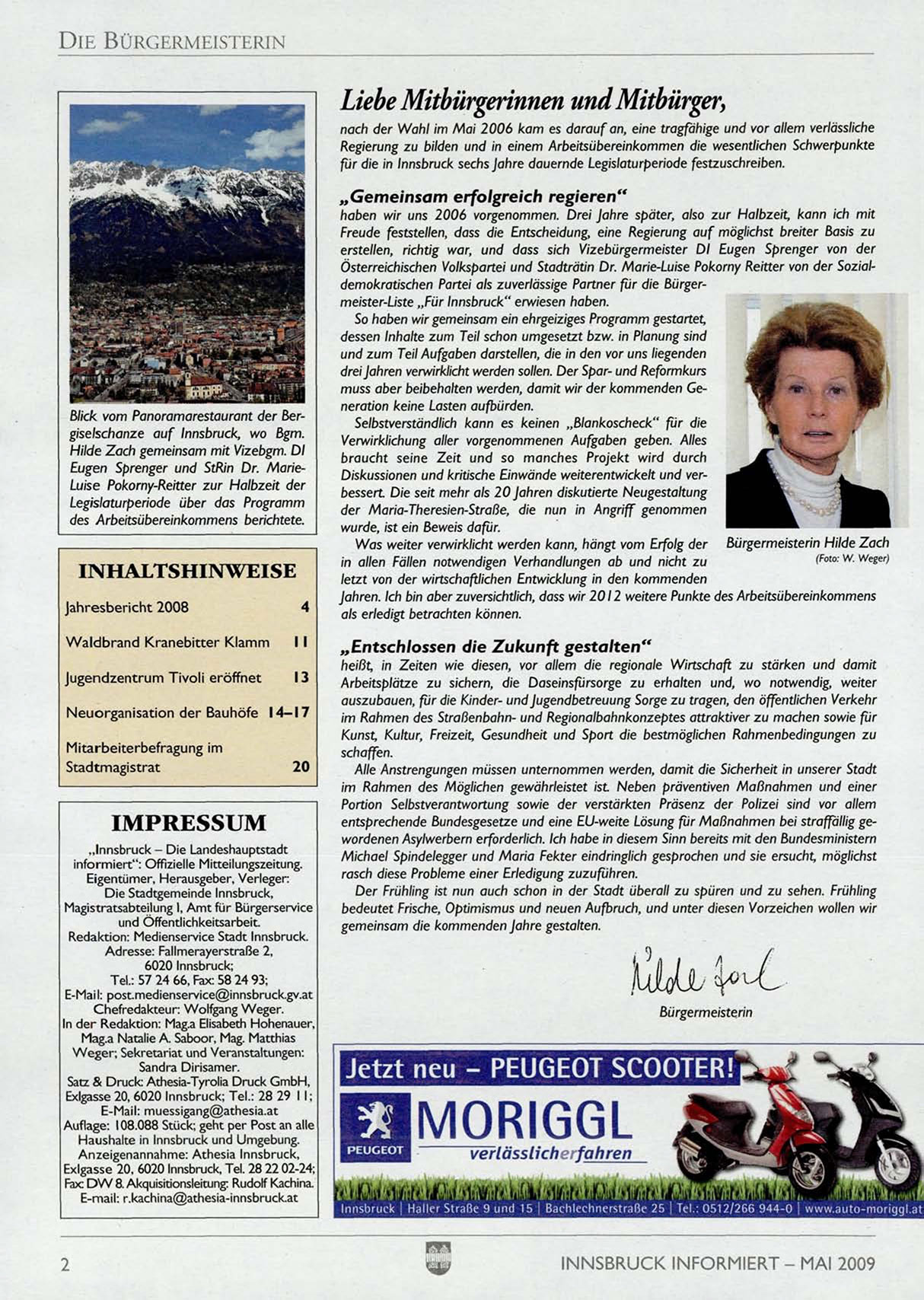 Österreichischen Volkspartei und Stadträtin Dr. Marie-Luise Pokorny Reitter von der Sozialdemokratischen Partei als zuverlässige Partner für die Bürgermeister-Liste „Für Innsbruck" erwiesen haben.