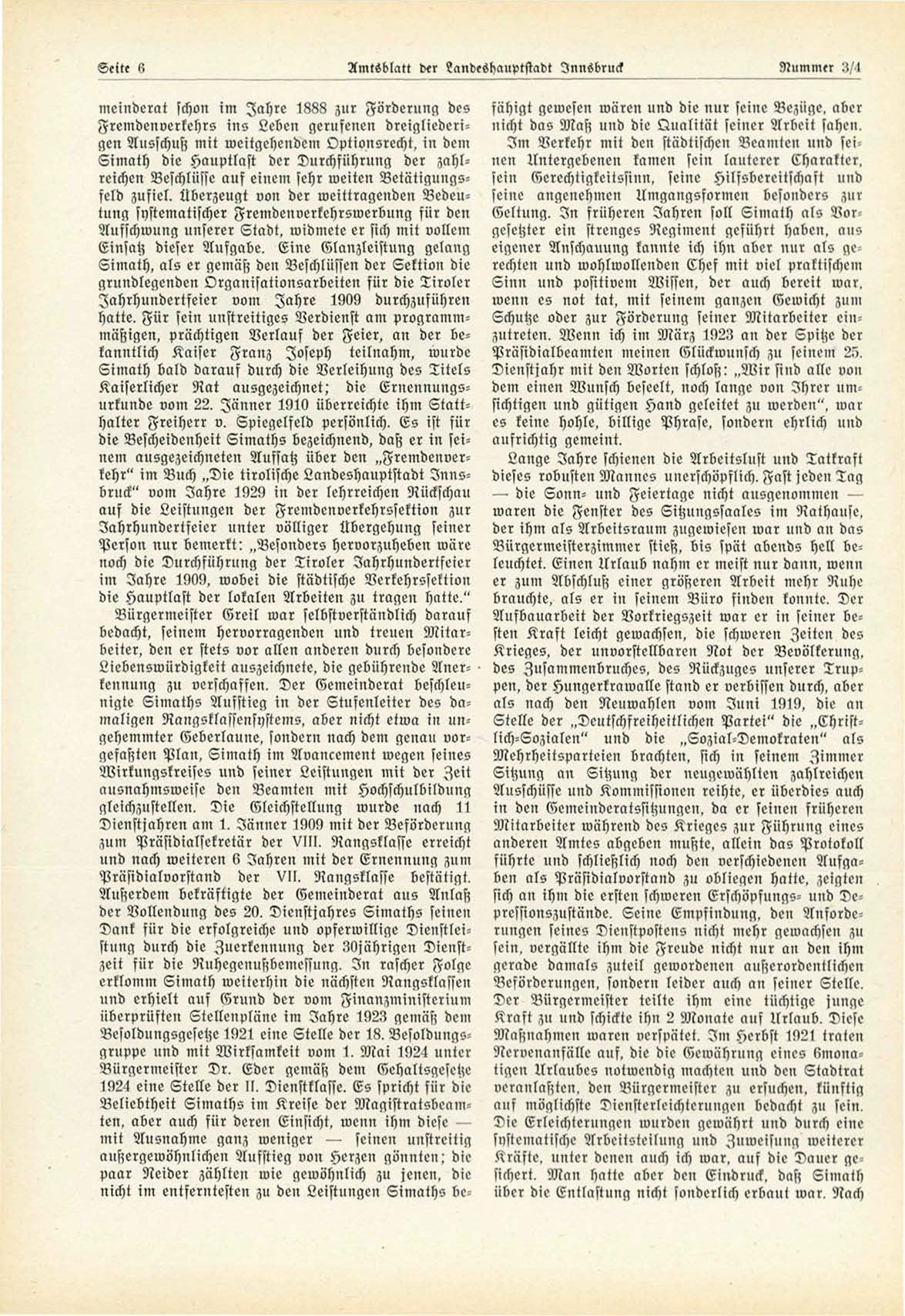 die Bescheidenheit Simaths bezeichnend, daß er in seinem ausgezeichneten Aufsatz über den „Fremdenverkehr" im Buch „Die tirolische Landeshauptstadt I n n s bruck" vom Jahre 1929 in der lehrreichen Rückschau