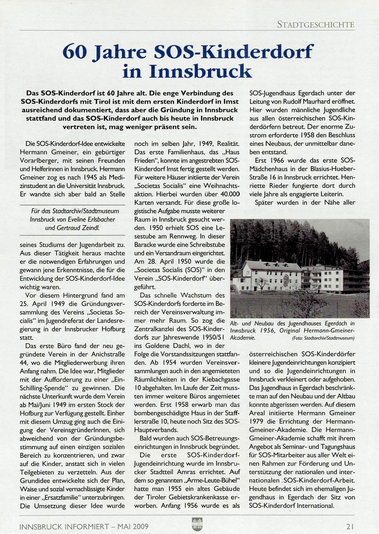 Gmeiner-Akademie. Die HermannBald wurden auch SOS-Betreuungseinrichtungen in Innsbruck begründet.