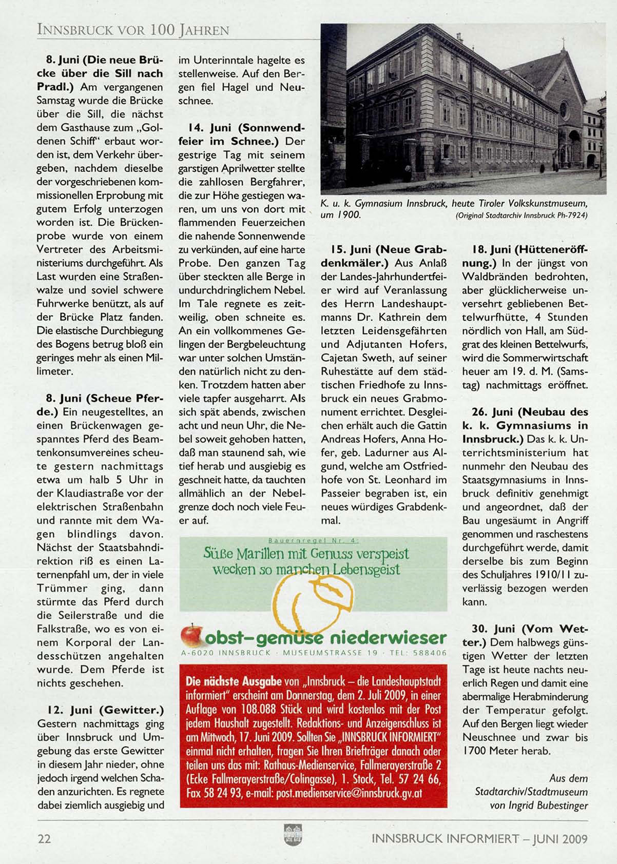 am Mittwoch, 17. Juni 2009. Sollten Sie „INNSBRUCK INFORMIERT"