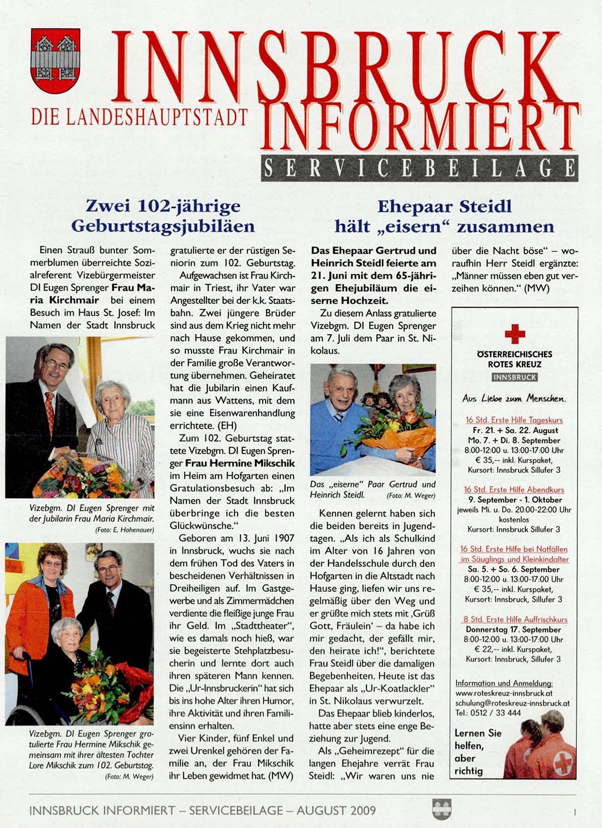 INNSBRUCK INFORMIERT - SERVICEBEILAGE - AUGUST 2009