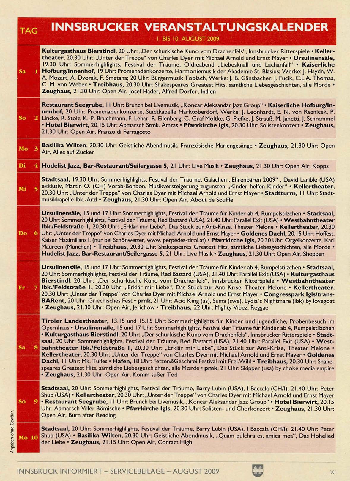 INNSBRUCK INFORMIERT - SERVICEBEILAGE - AUGUST 2009