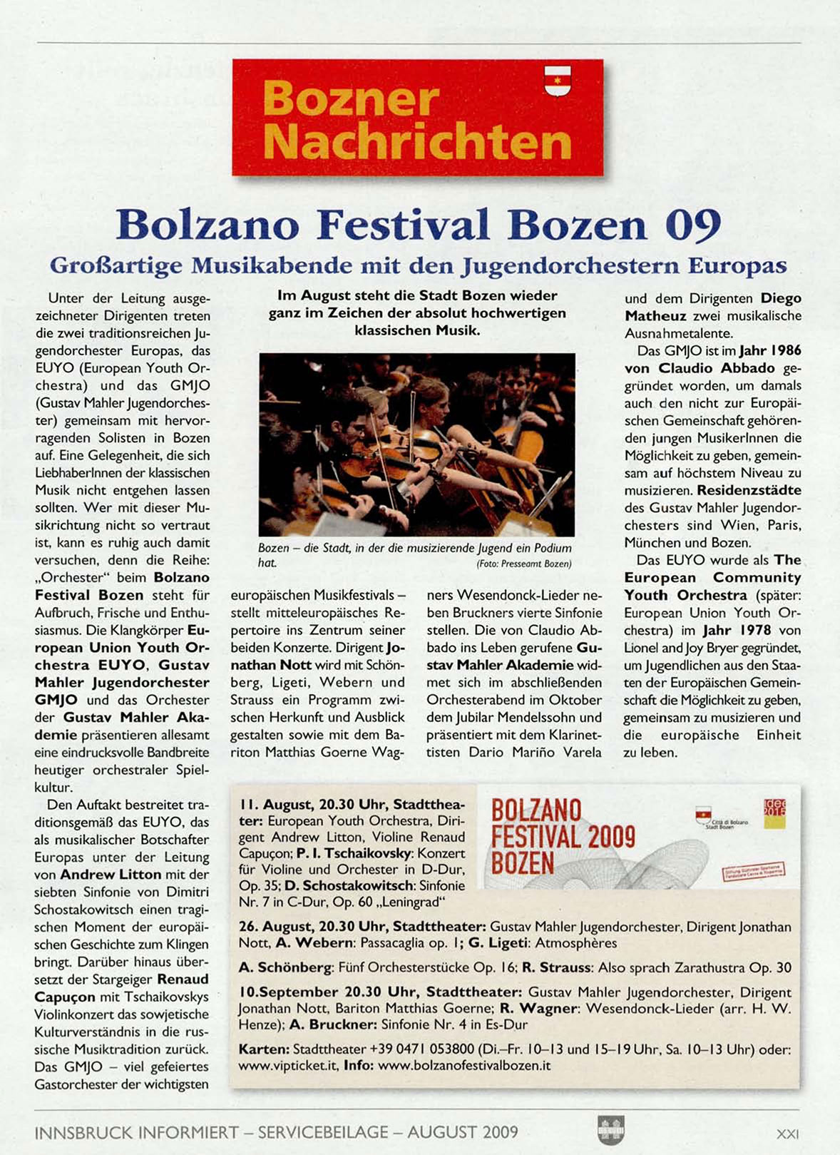 INNSBRUCK INFORMIERT - SERVICEBEILAGE - AUGUST 2009