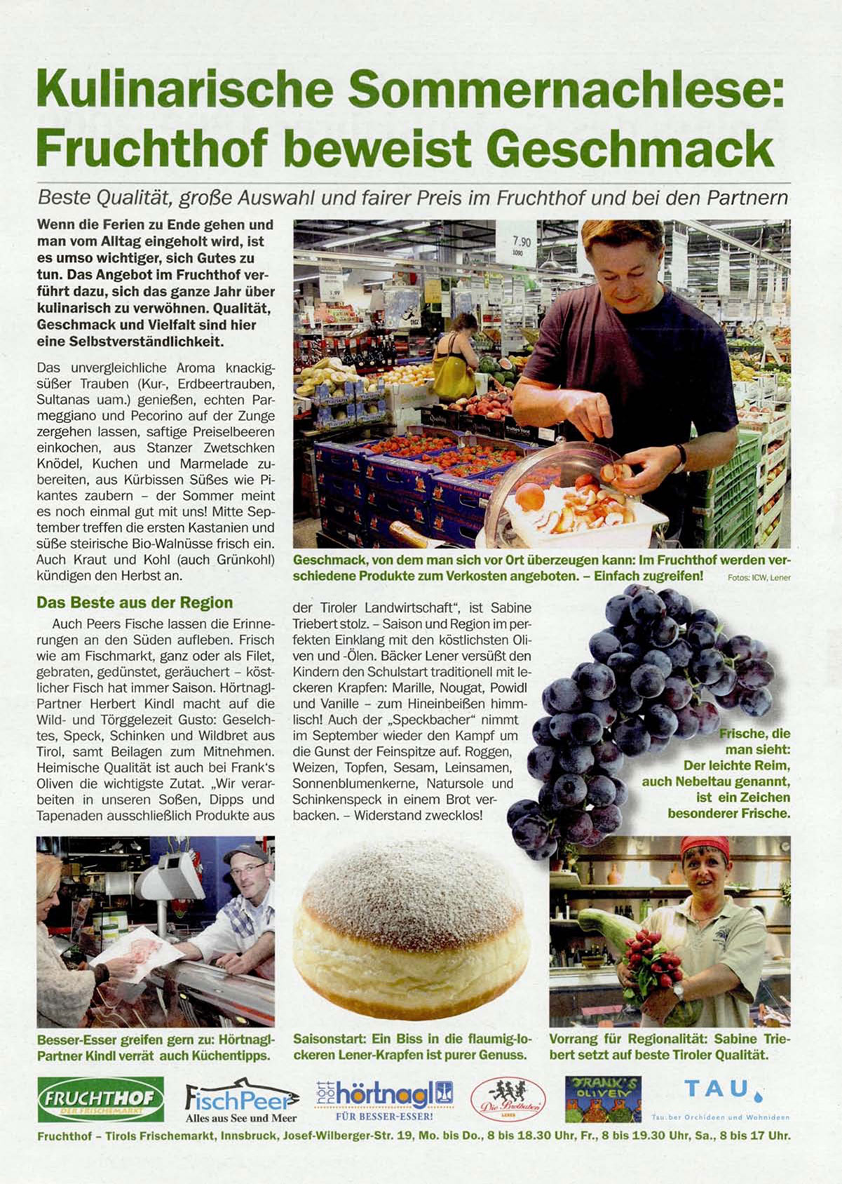 Tirols Frischemarkt, Innsbruck, Josef-Wilberger-Str. 19, Mo. bis Do., 8 bis 18.30 Uhr, Fr., 8 bis 19.30 Uhr, Sa., 8 bis 17 Uhr.