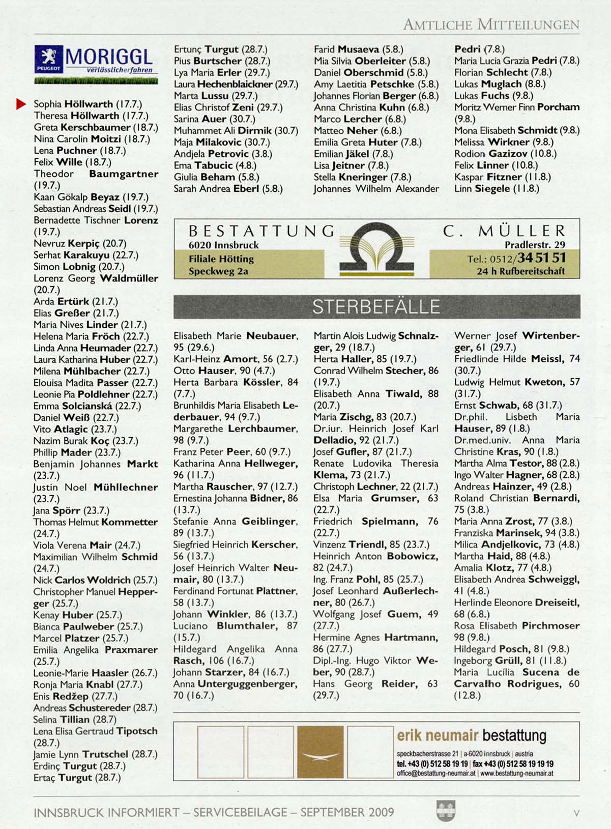 INNSBRUCK INFORMIERT - SERVICEBEILAGE - SEPTEMBER 2009