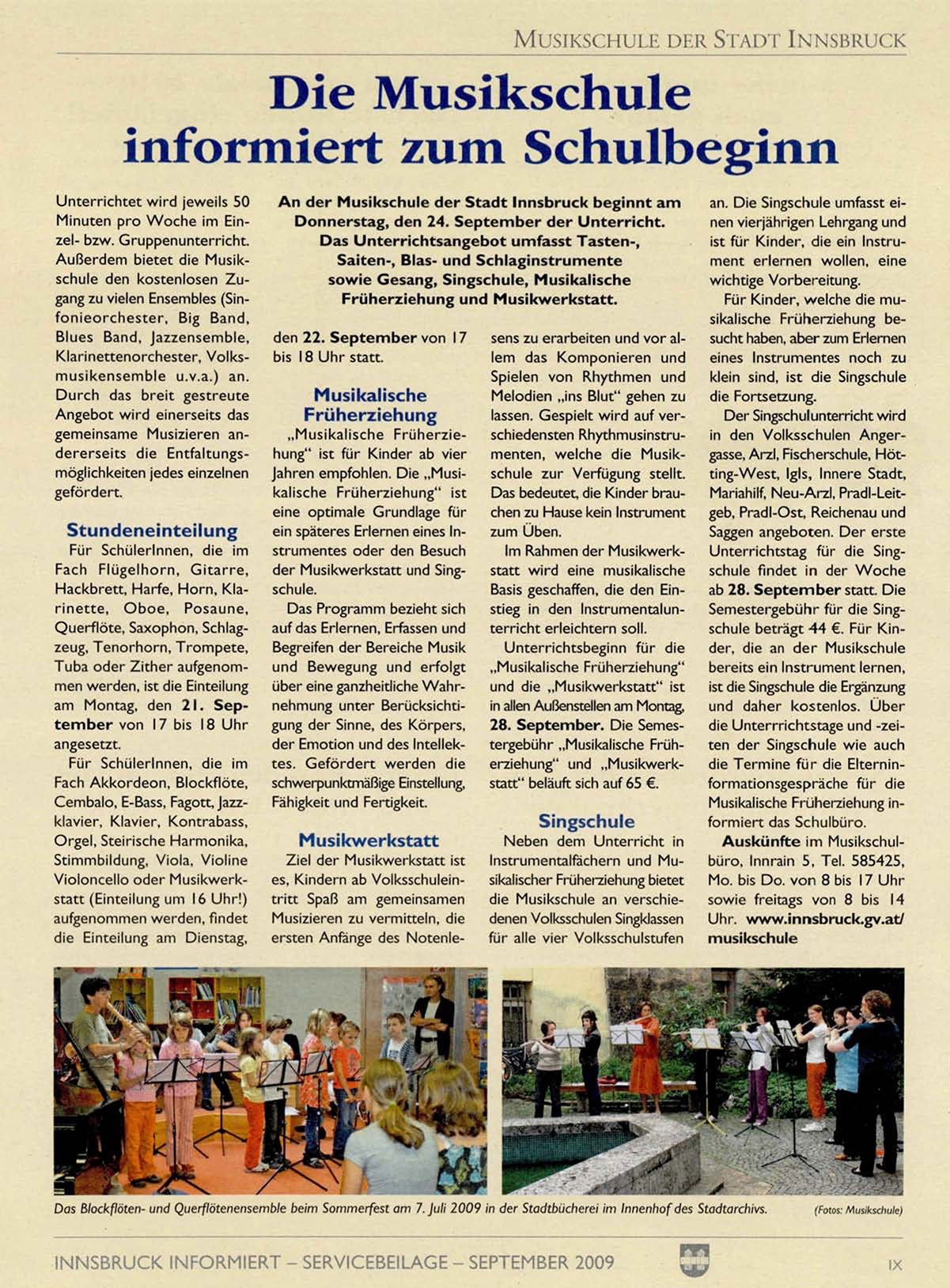 INNSBRUCK INFORMIERT - SERVICEBEILAGE - SEPTEMBER 2009