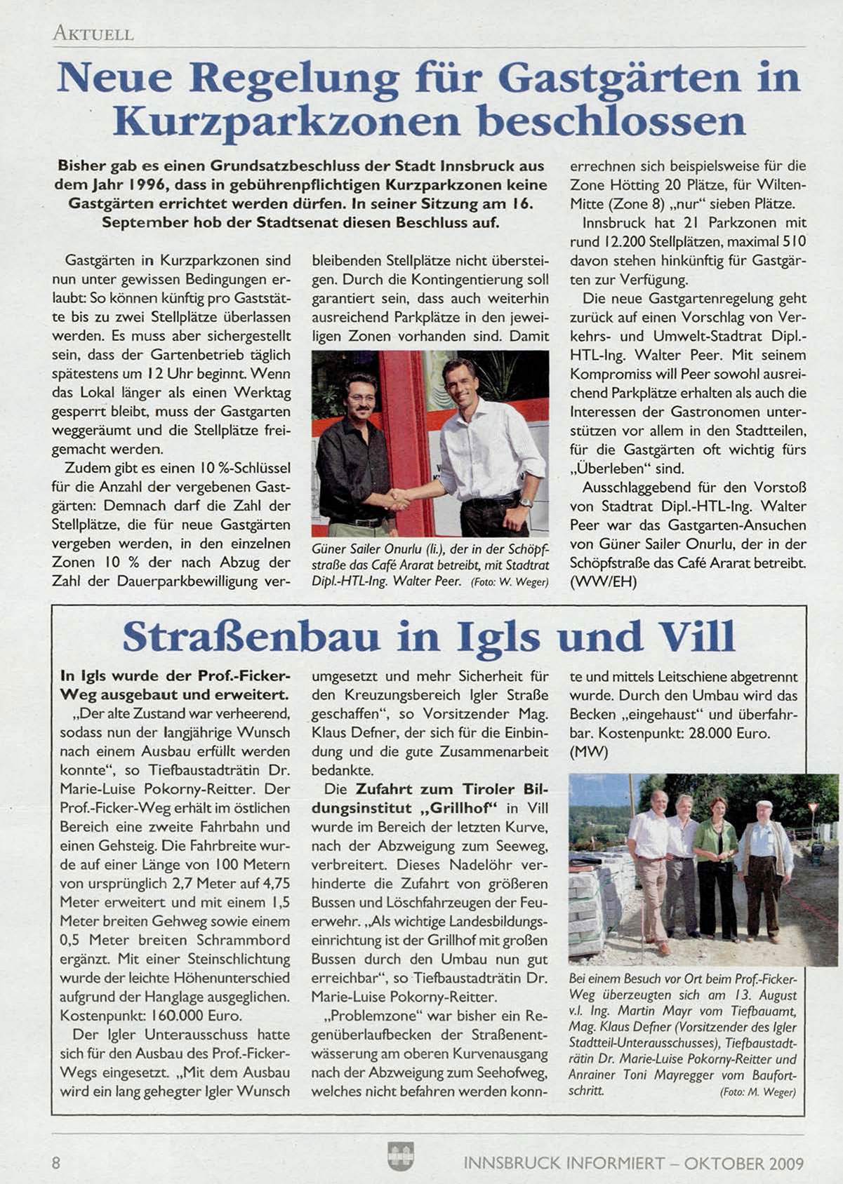 sich für den Ausbau des Prof.-FickerWegs eingesetzt. „ M i t dem Ausbau