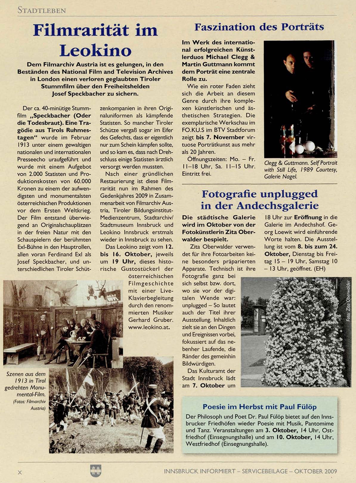 Gedenkjahres 2009 in Zusammenarbeit von Filmarchiv Austria, Tiroler BildungsinstitutMedienzentrum, Stadtarchiv/