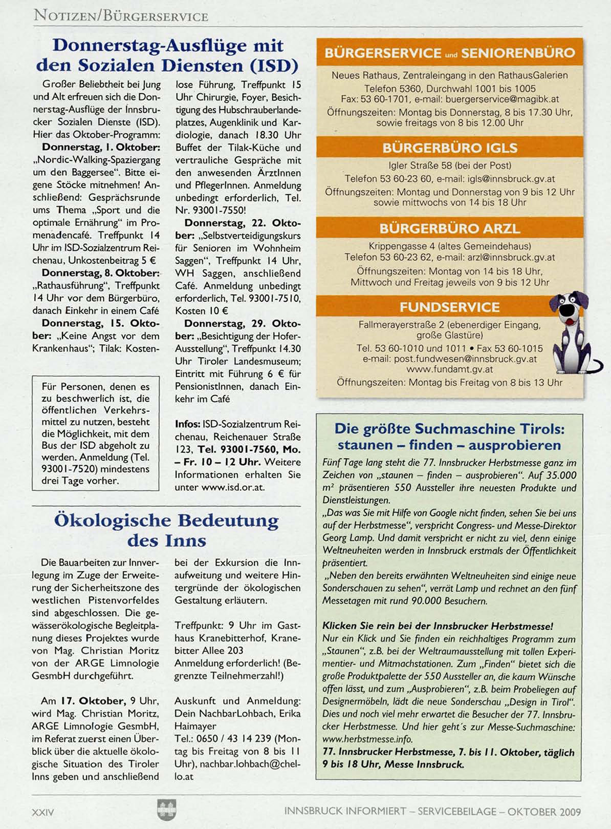 INNSBRUCK INFORMIERT - SERVICEBEILAGE - O K T O B E R 2009