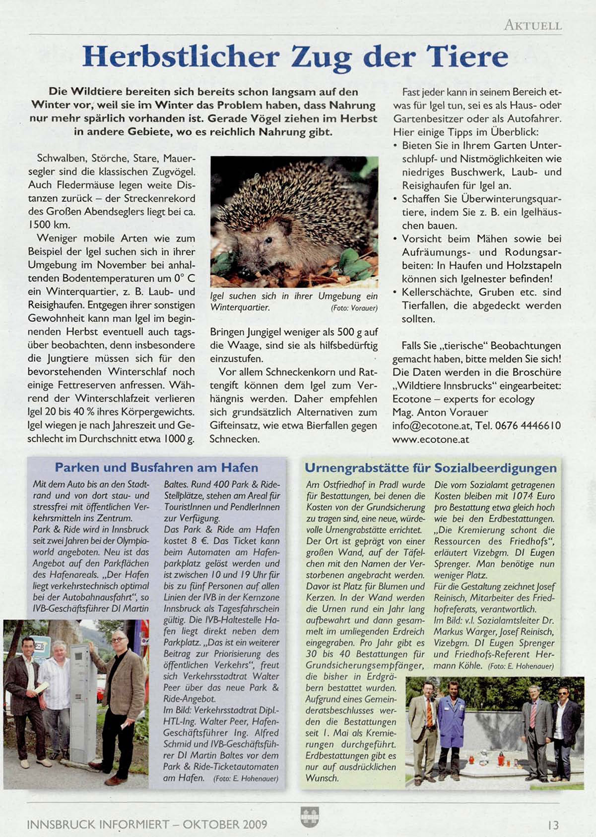 tengift können dem Igel zum Ver„Wildtiere Innsbrucks" eingearbeitet: