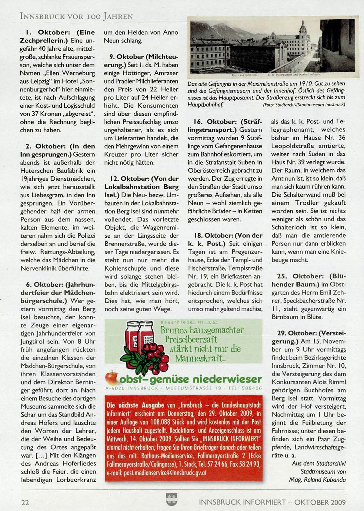 Mittwoch, 14. Oktober 2009. Sollten Sie „INNSBRUCK INFORMIERT"
