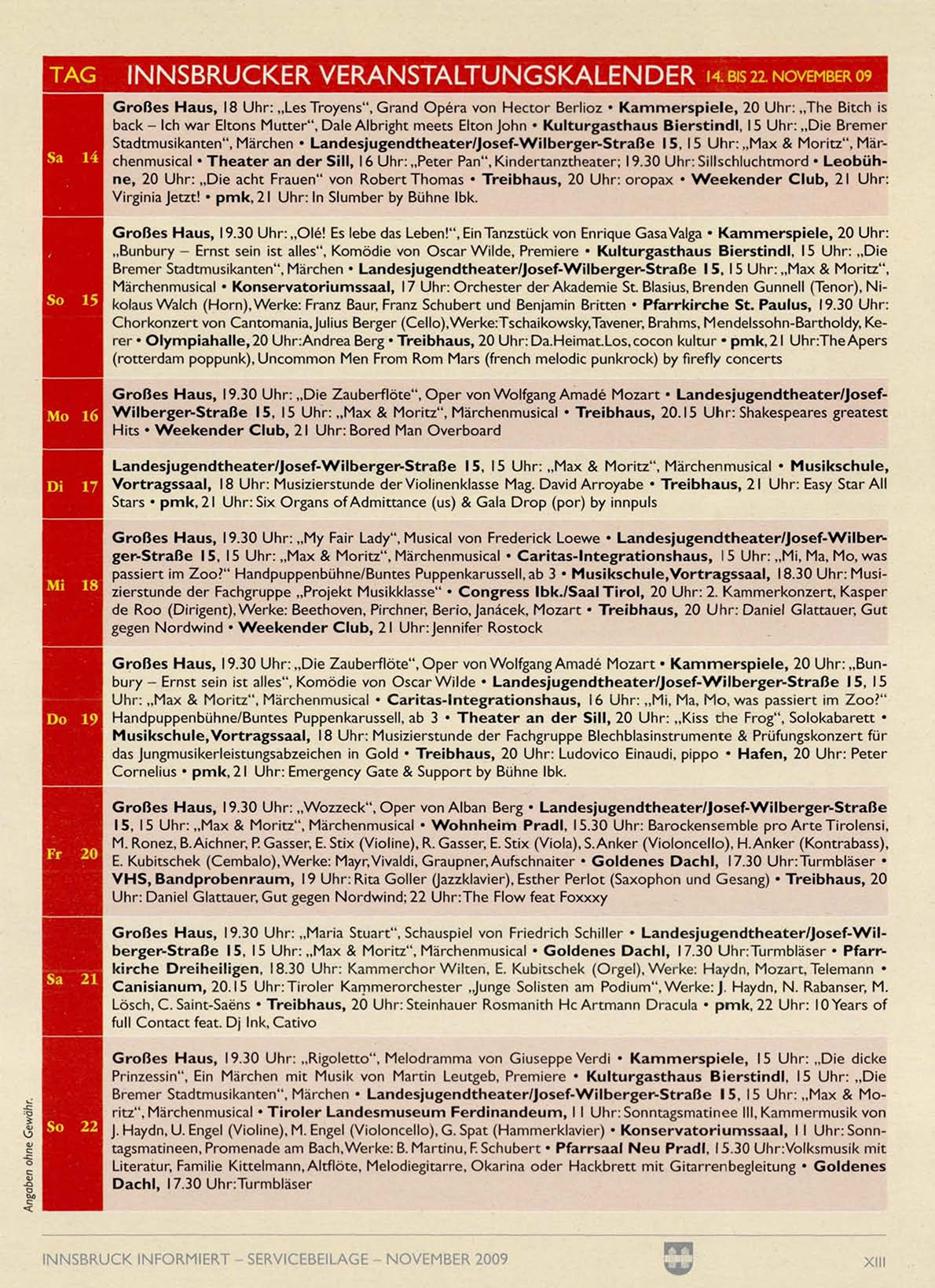 INNSBRUCK INFORMIERT - SERVICEBEILAGE - NOVEMBER 2009