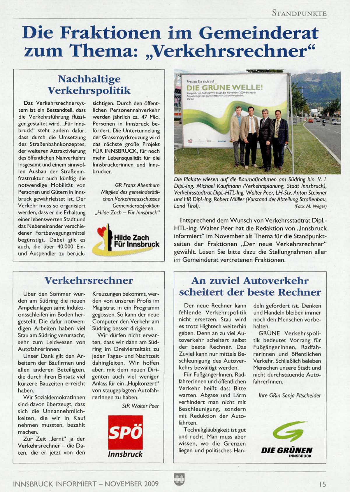 die Verkehrsführung flüssiger gestaltet wird. „Für Innsbruck" steht zudem dafür,