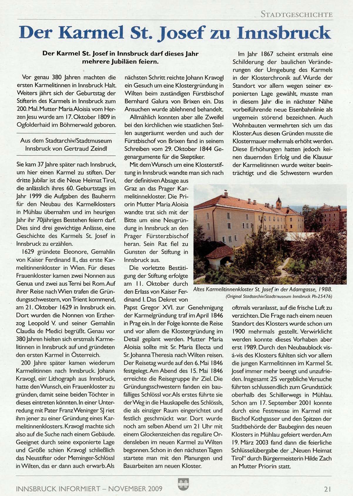 I N N S B R U C K I N F O R M I E R T - N O V E M B E R 2009