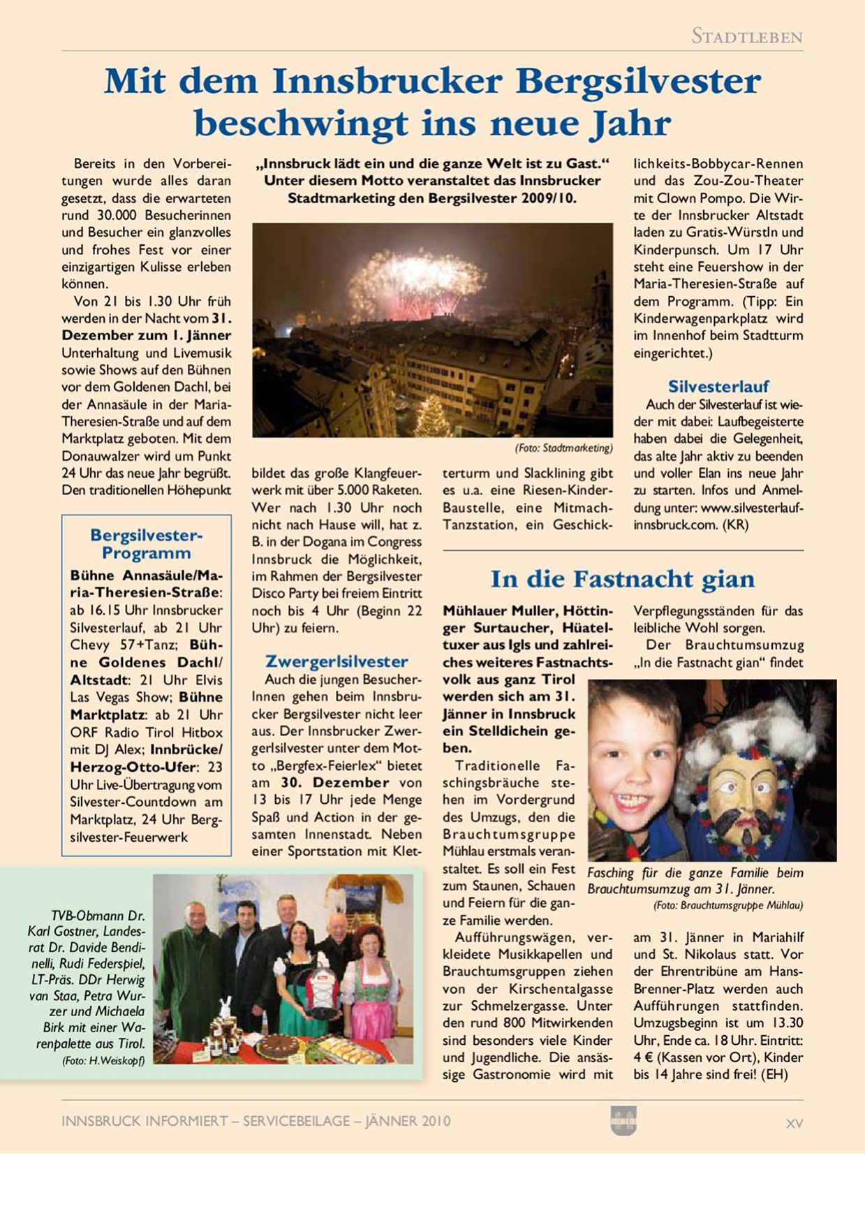 „Innsbruck lädt ein und die ganze Welt ist zu Gast.“ Unter diesem Motto veranstaltet das Innsbrucker Stadtmarketing den Bergsilvester 2009/10.