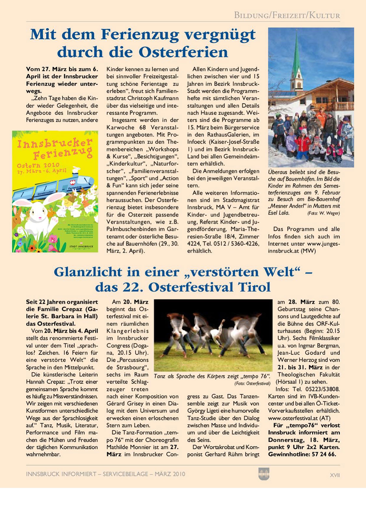 INNSBRUCK INFORMIERT — SERVICEBEILAGE — MARZ 2010