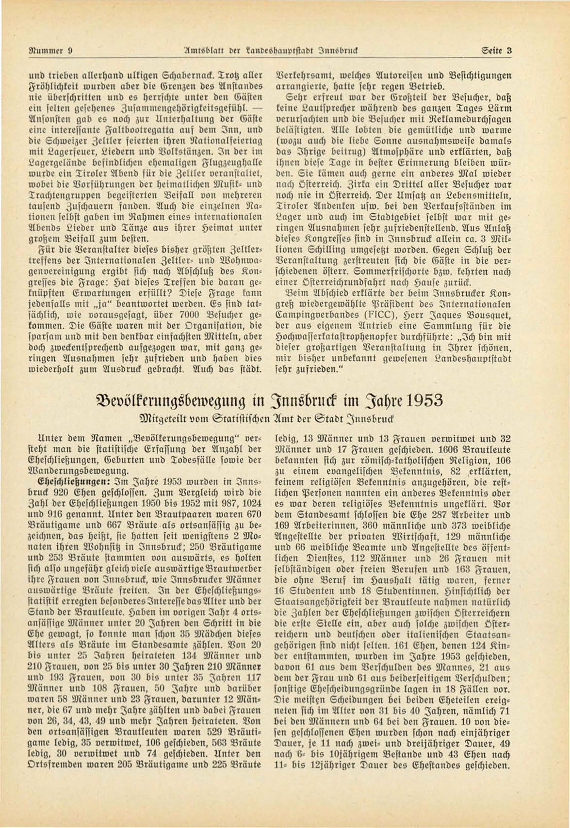 Eheschließungen: I m Jahre 1953 wurden in I n n s bruck 920 Ehen geschlossen. Zum Vergleich wird die