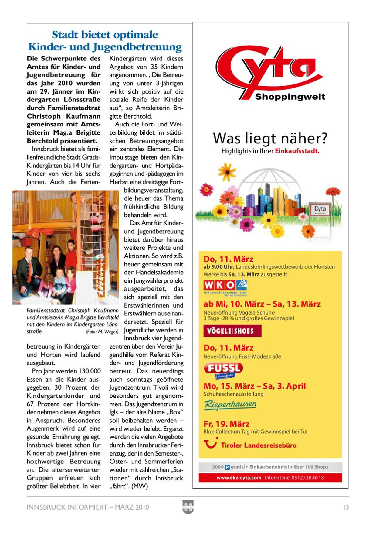 Innsbruck vier Jugendzentren über den Verein jugendhilfe vom Referat Kinder- und Jugendförderung betreut. Das neuerdings auch sonntags geöffnete Jugendzentrum Tivoli wird besonders gut angenommen. Das Jugendzentrum in lgls — der alte Name „Box“ soll beibehalten werden — wird wieder belebt.