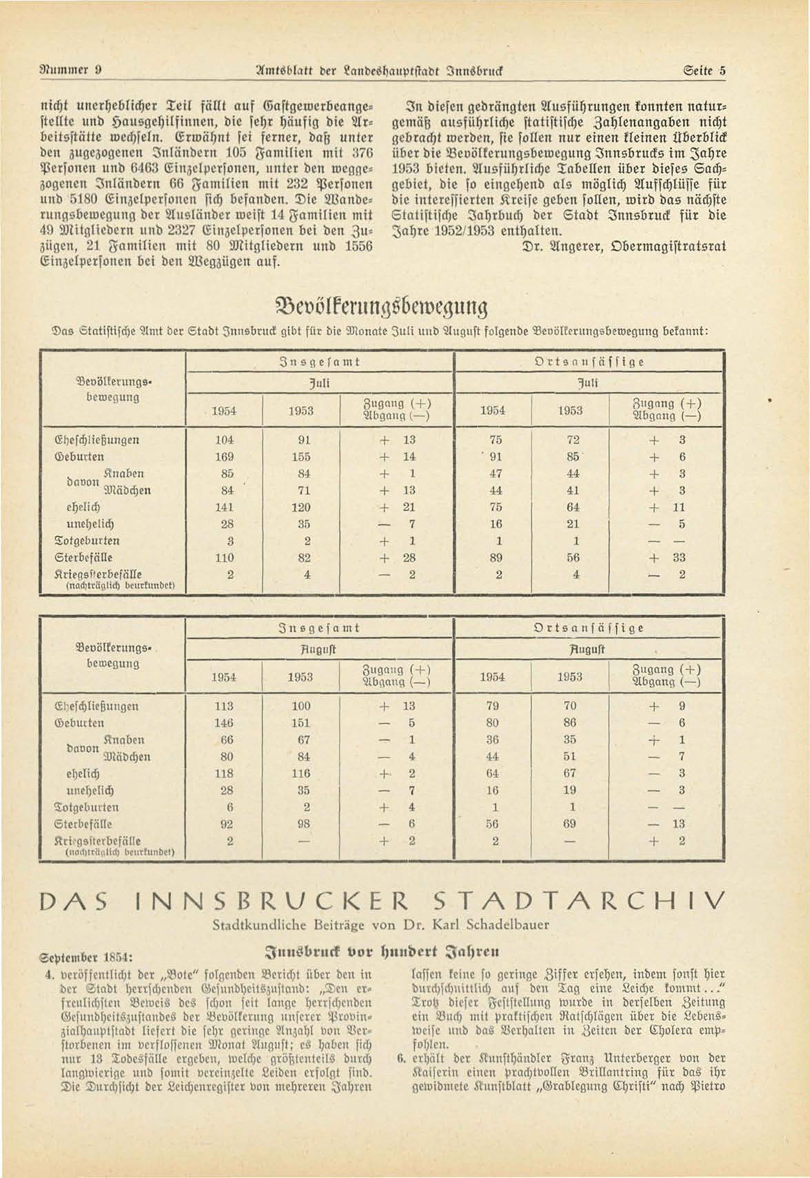 Das Statistische Amt der Stadt Innsbruck gibt für die Monate J u l i und August folgende Veoölkerungsbewegung bekannt: