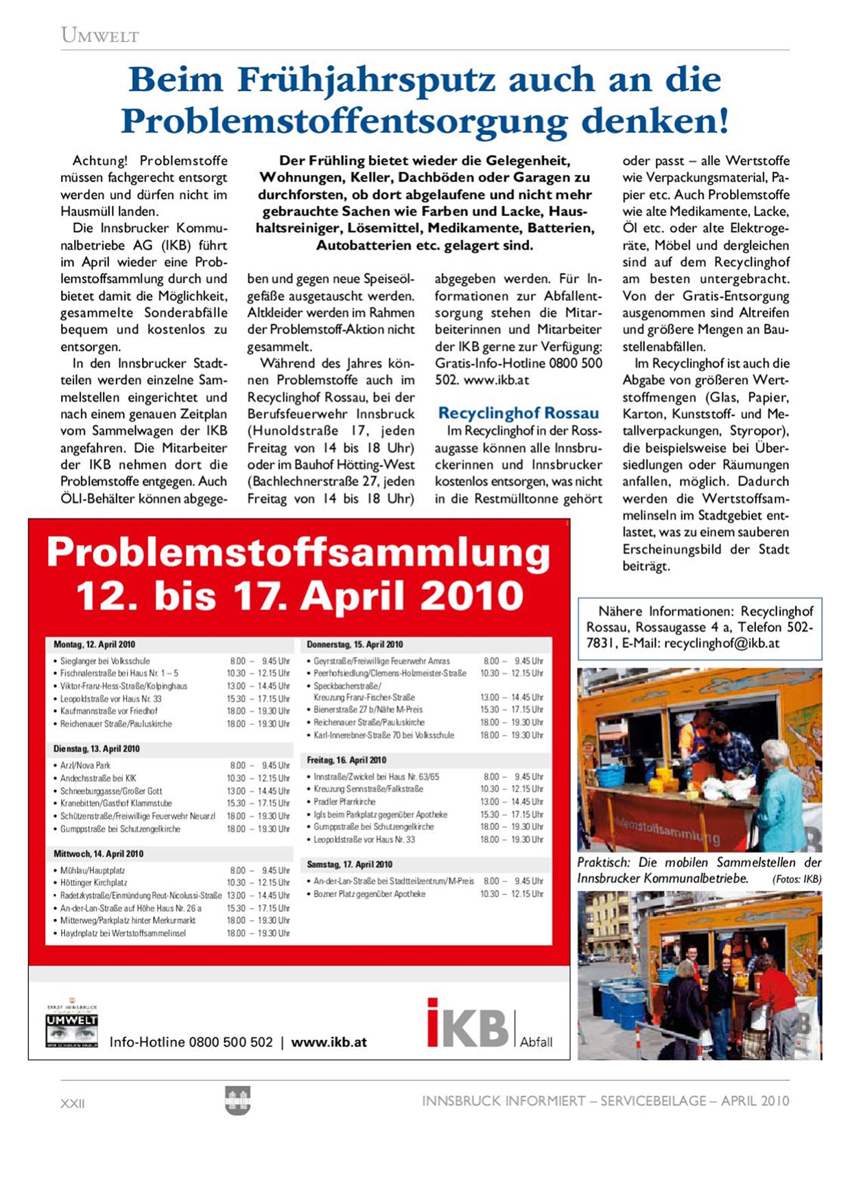 INNSBRUCK INFORMIERT - SERVIGEBEILAGE—APRIL 2010