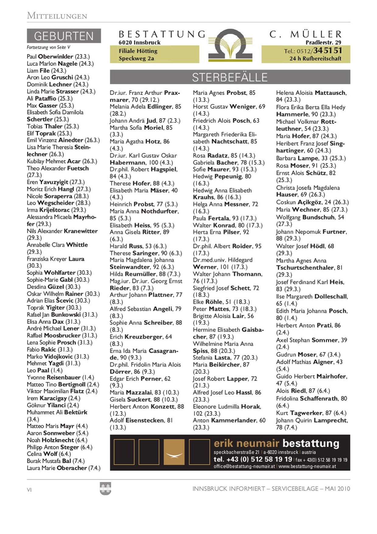 INNSBRUCK INFORMIERT- SERVICEBEILAGE- MAl 2010