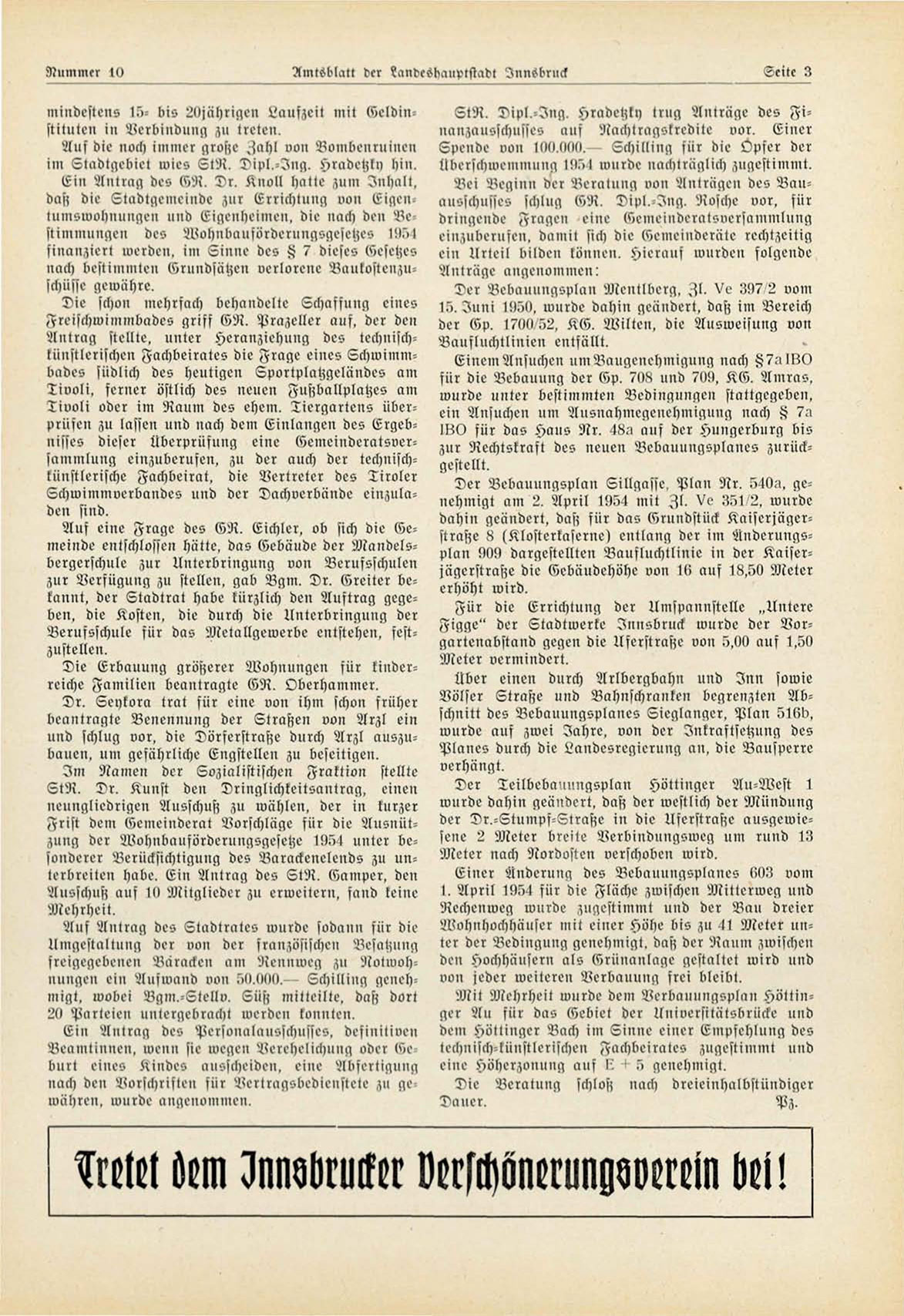 Die Erbauung größerer Wohnungen für kinderreiche Familien beantragte GR. Oberhammer.