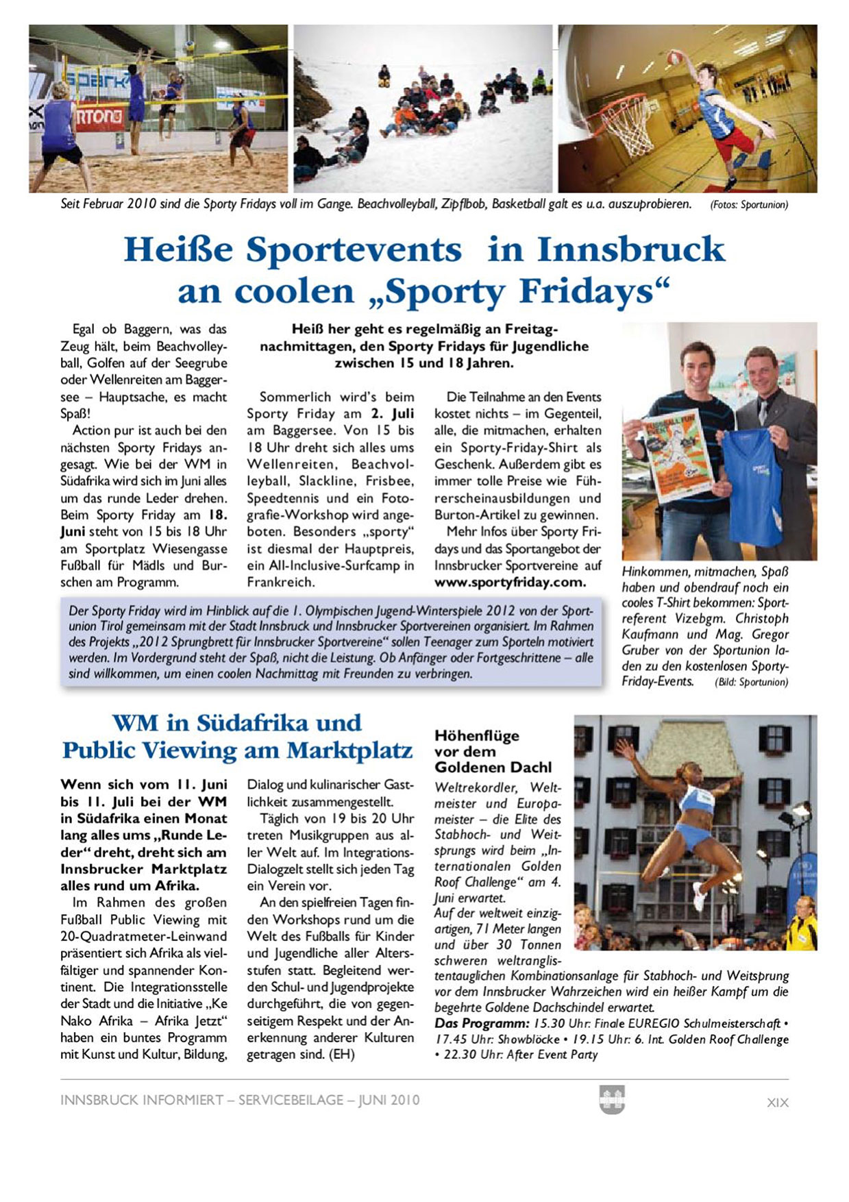 Der Sporty Friday wird im Hinblick auf die 1. Ohmpischen Jugend-Winterspiele 2012 von der Sportunion Tirol gemeinsam mit der Stadt Innsbnuick und Innsbnuicker Sportvereinen organisiert. Im Rahmen des Projekts „201 2 Sprungbrett für Innsbrucker