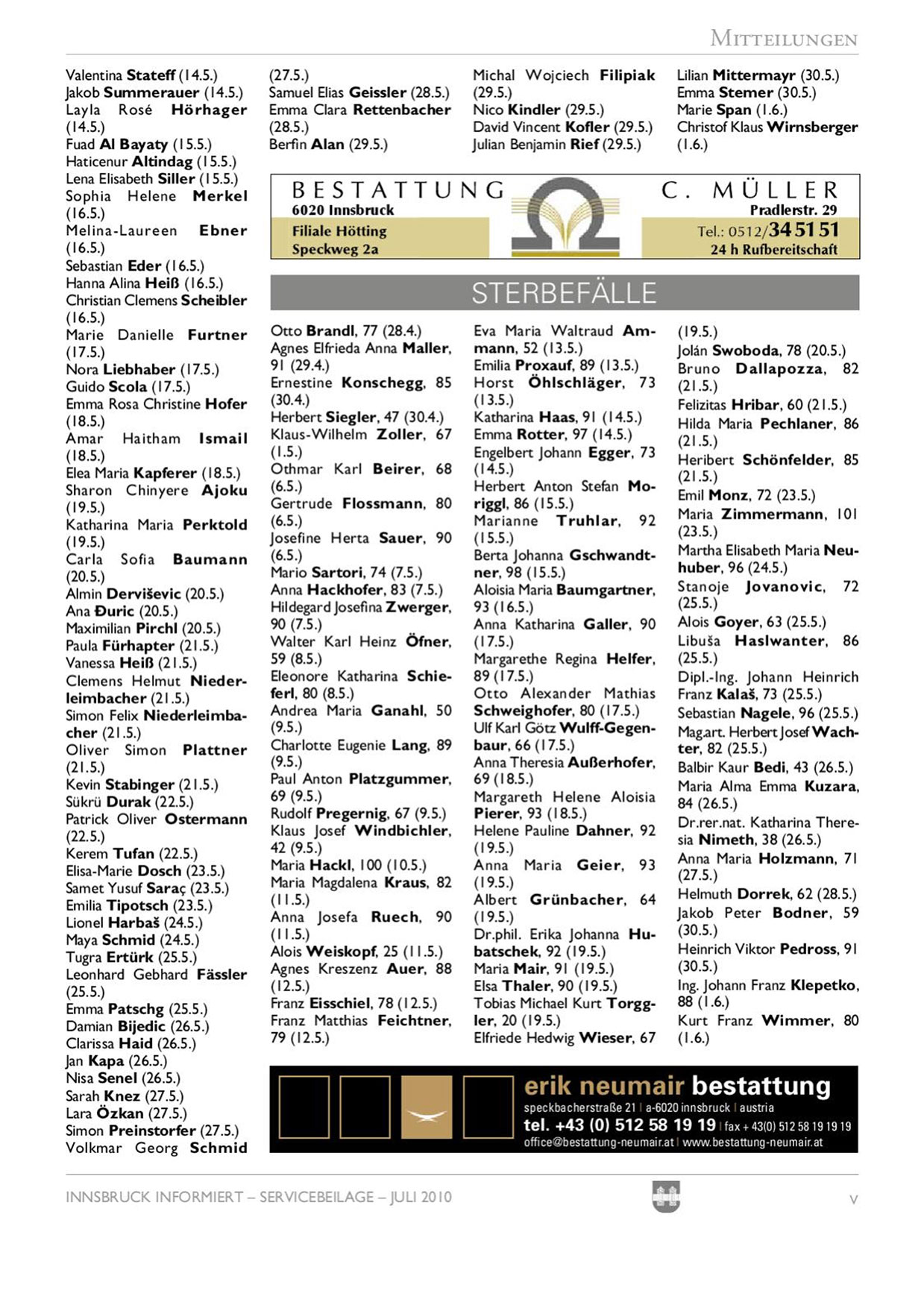 INNSBRUCK INFORMIERT - SERVICEBEILAGE-ULI 2010