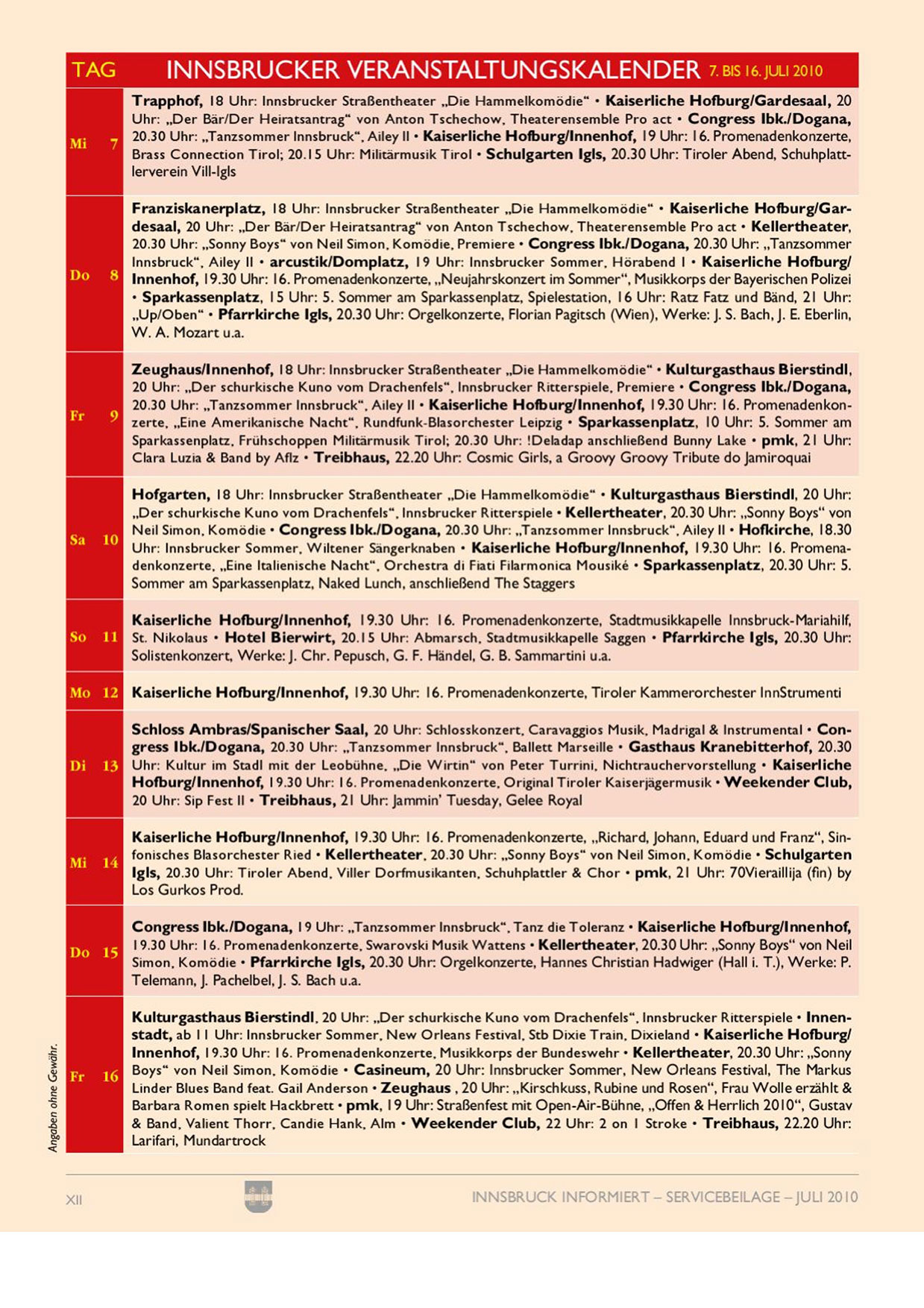 INNSBRUCK INFORMIERT - SERVICEBEILAGE—JULI 2010