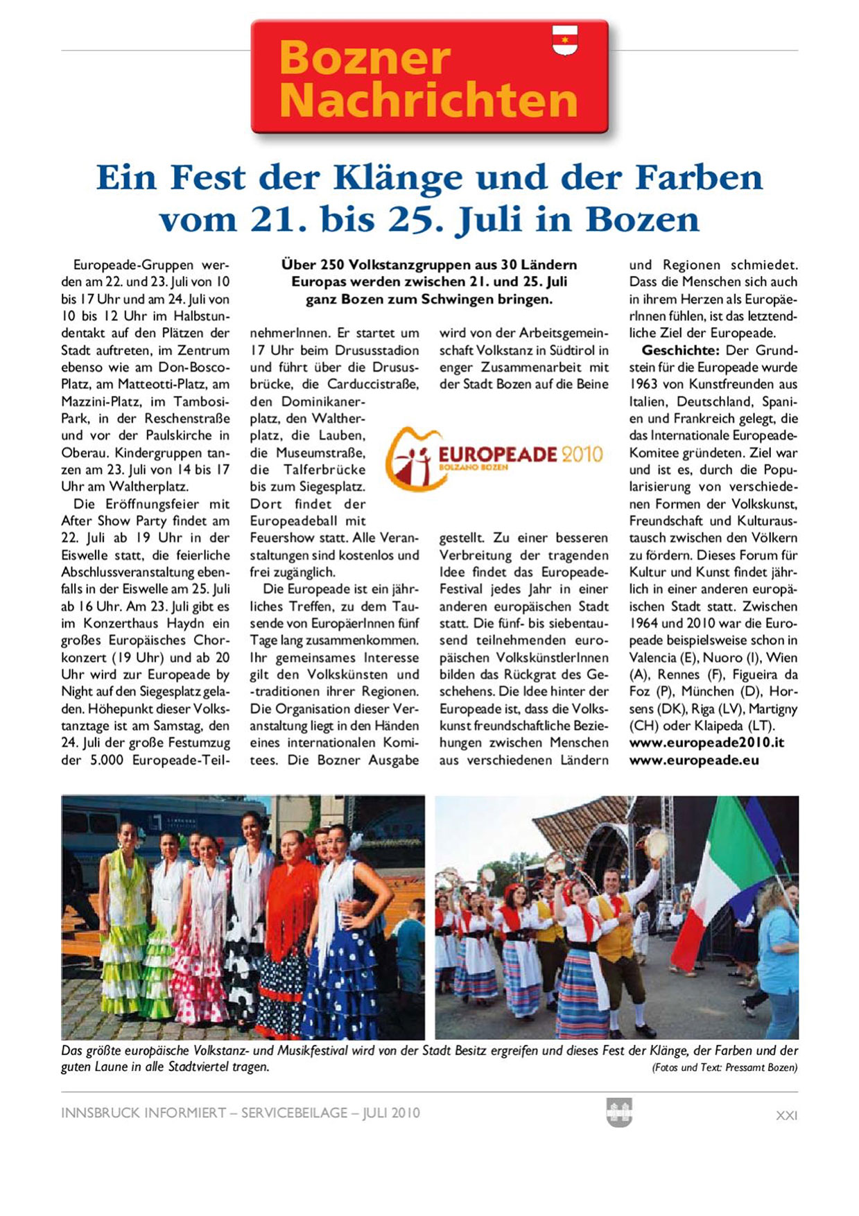 INNSBRUCK INFORMIERT - SERVICEBEILAGE —JULI 2010
