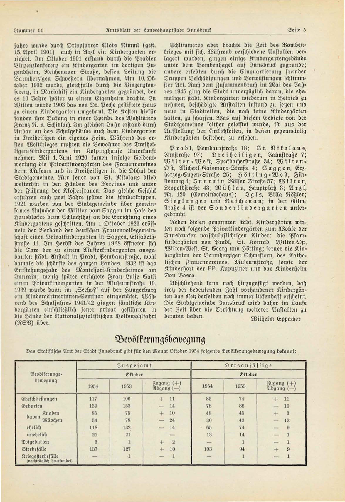l nck gibt fiir den Monat Ottober 1954 folgende Bevölkerungsbewegung bekannt: