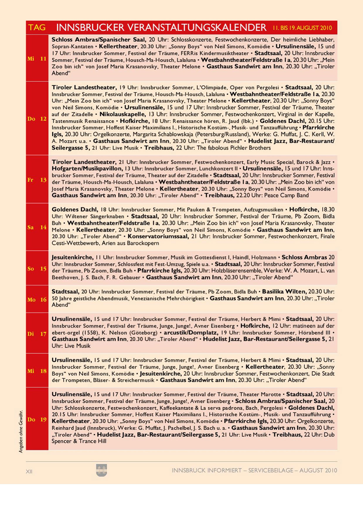 INNSBRUCK INFORMIERT - SERVICEBEILAGE—AUGUST 20 10