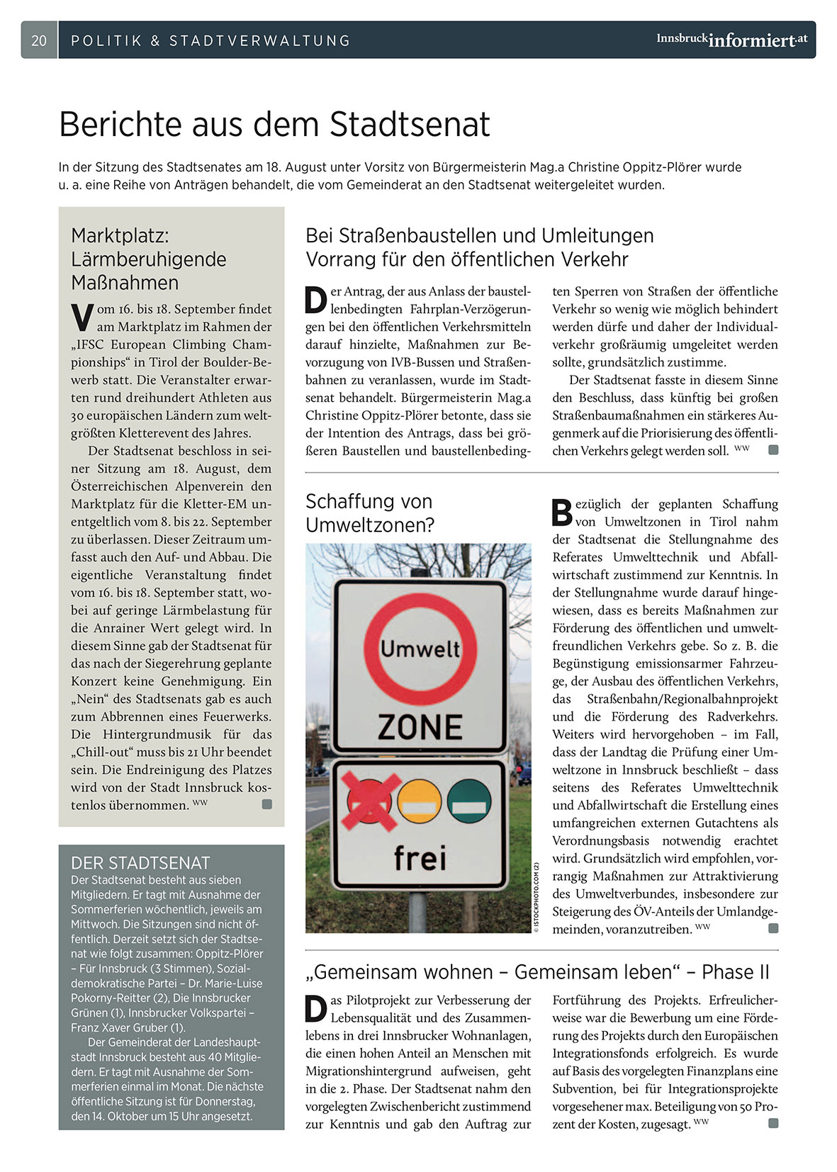 In der Sitzung des Stadtsenates am 18. August unter Vorsitz von Bürgermeisterin Mag.a Christine Oppitz-Plörer wurde