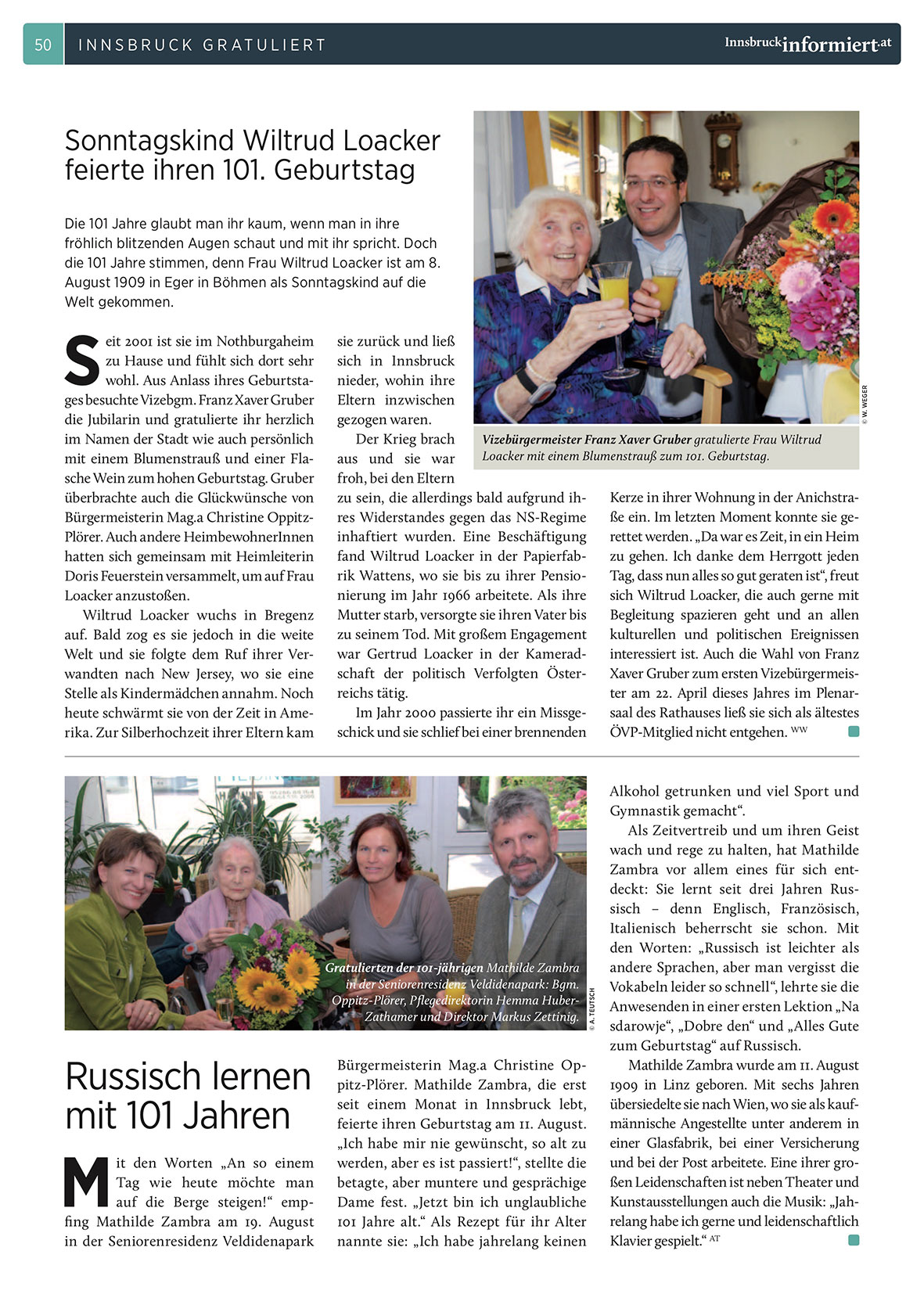 die 101 Jahre stimmen, denn Frau Wiltrud Loacker ist am 8.