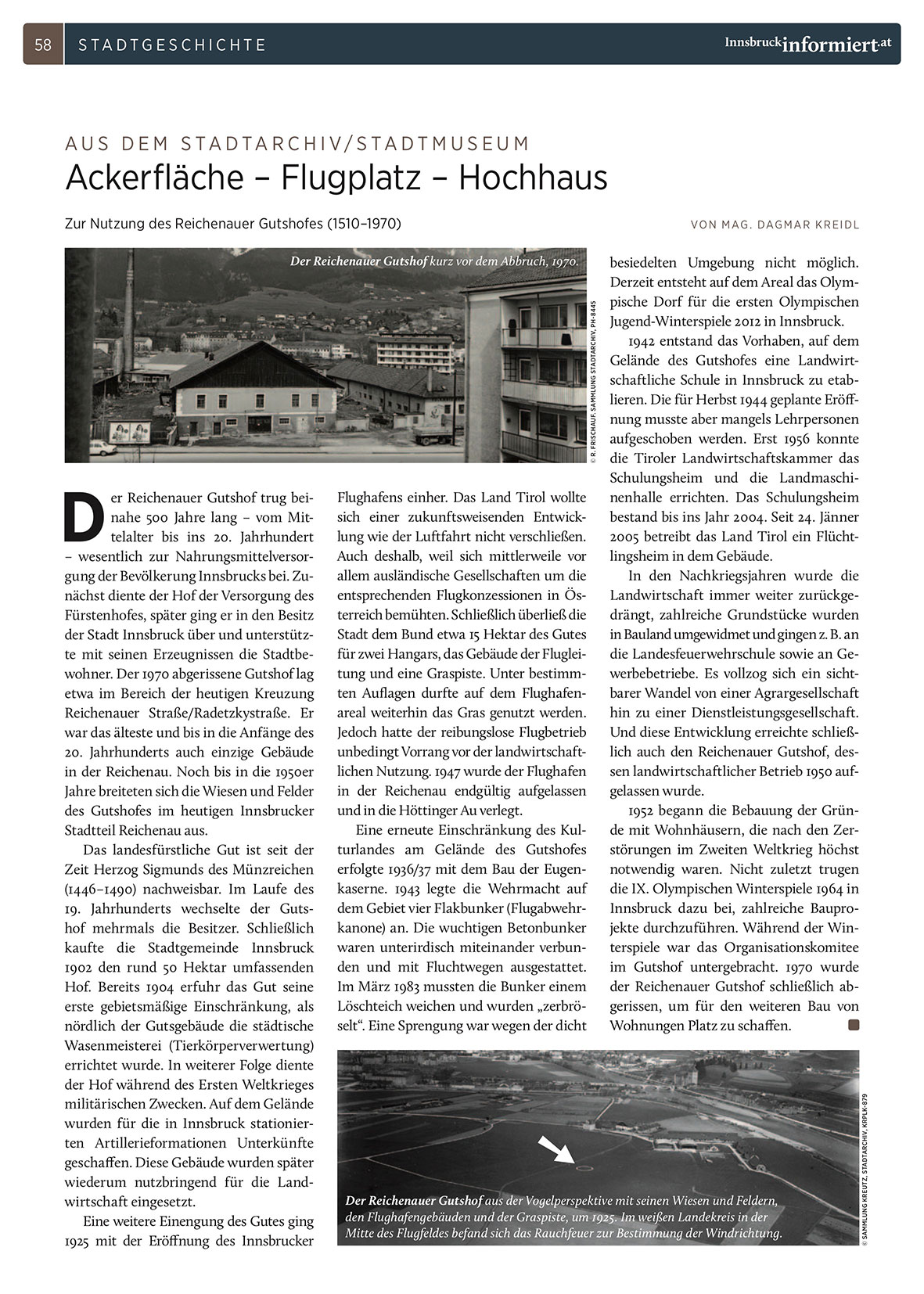 der Stadt Innsbruck über und unterstützte mit seinen Erzeugnissen die Stadtbewohner. Der 1970 abgerissene Gutshof lag