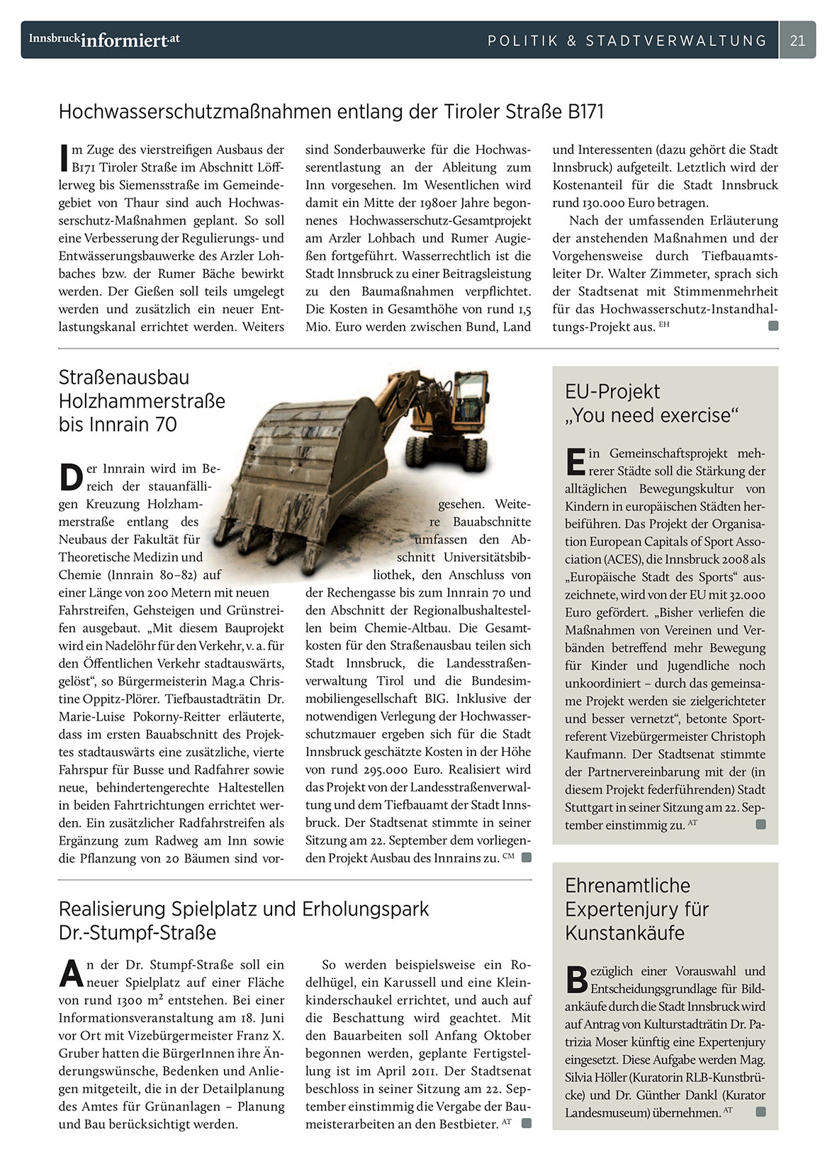 Sitzung am 22. September dem vorliegenden Projekt Ausbau des Innrains zu. CM