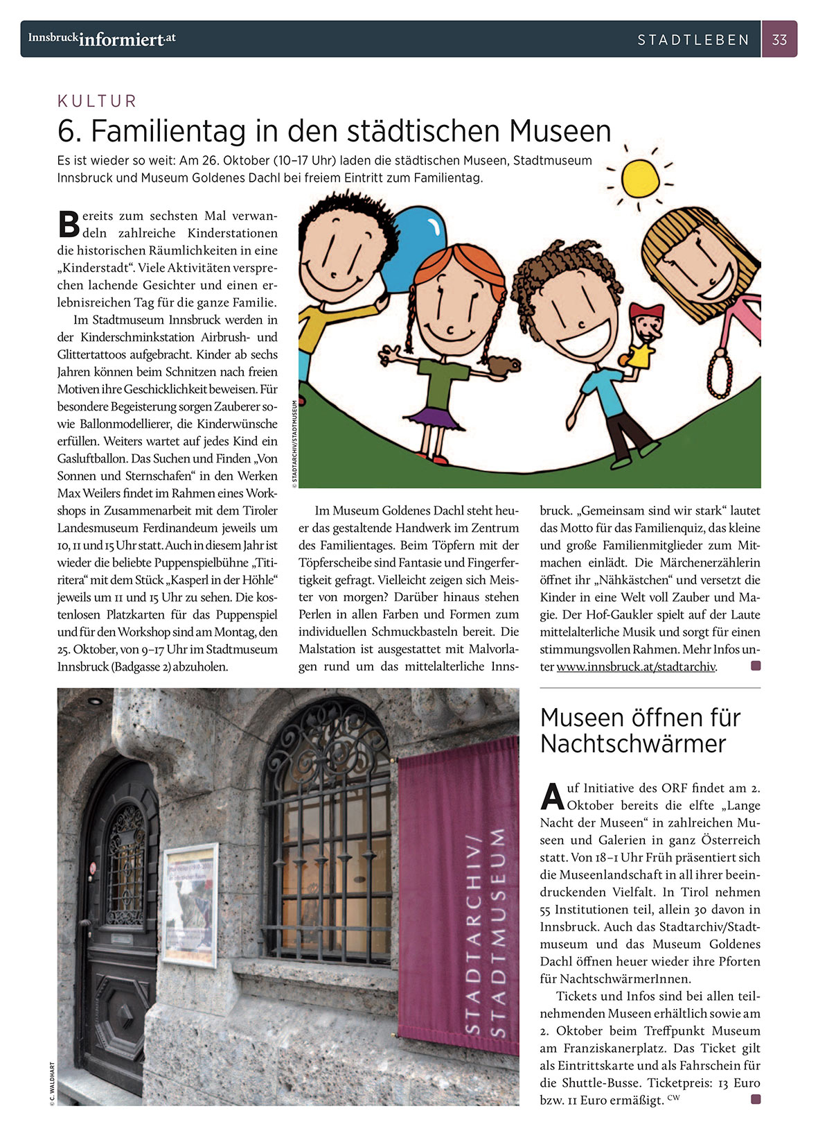 stimmungsvollen Rahmen. Mehr Infos unter www.innsbruck.at/stadtarchiv.