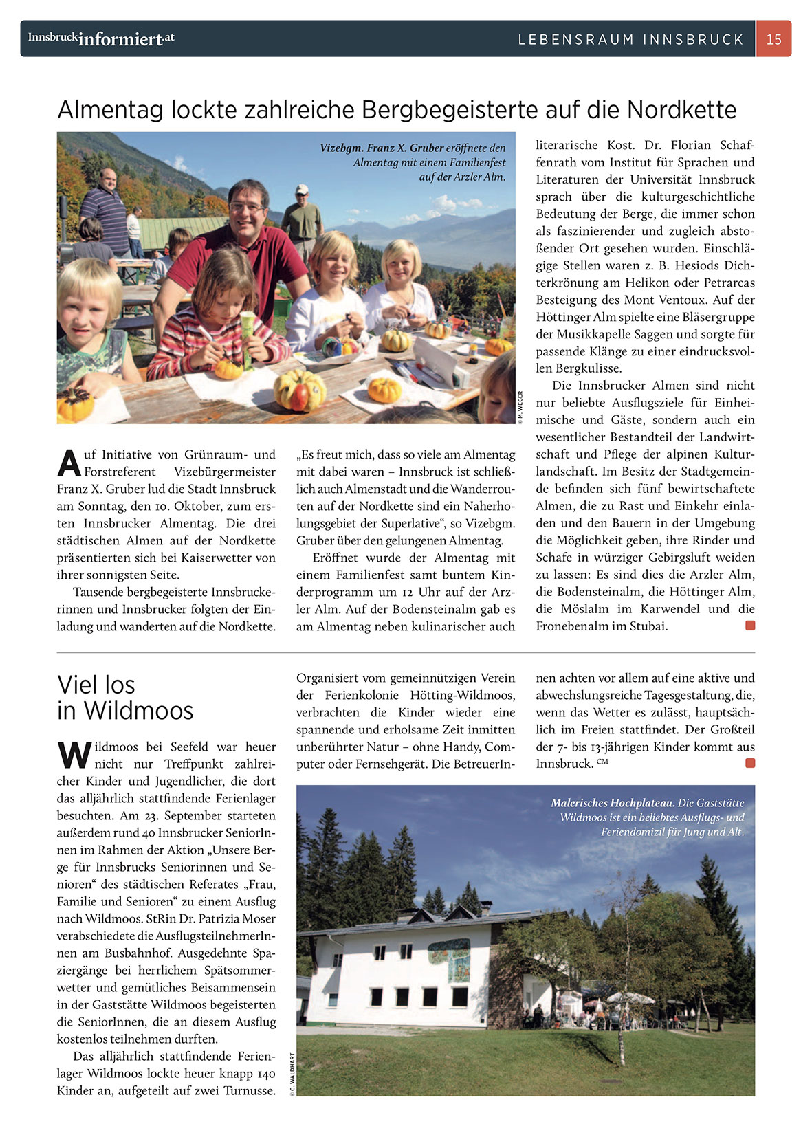 mit dabei waren – Innsbruck ist schließlich auch Almenstadt und die Wanderrouten auf der Nordkette sind ein Naherholungsgebiet der Superlative“, so Vizebgm.