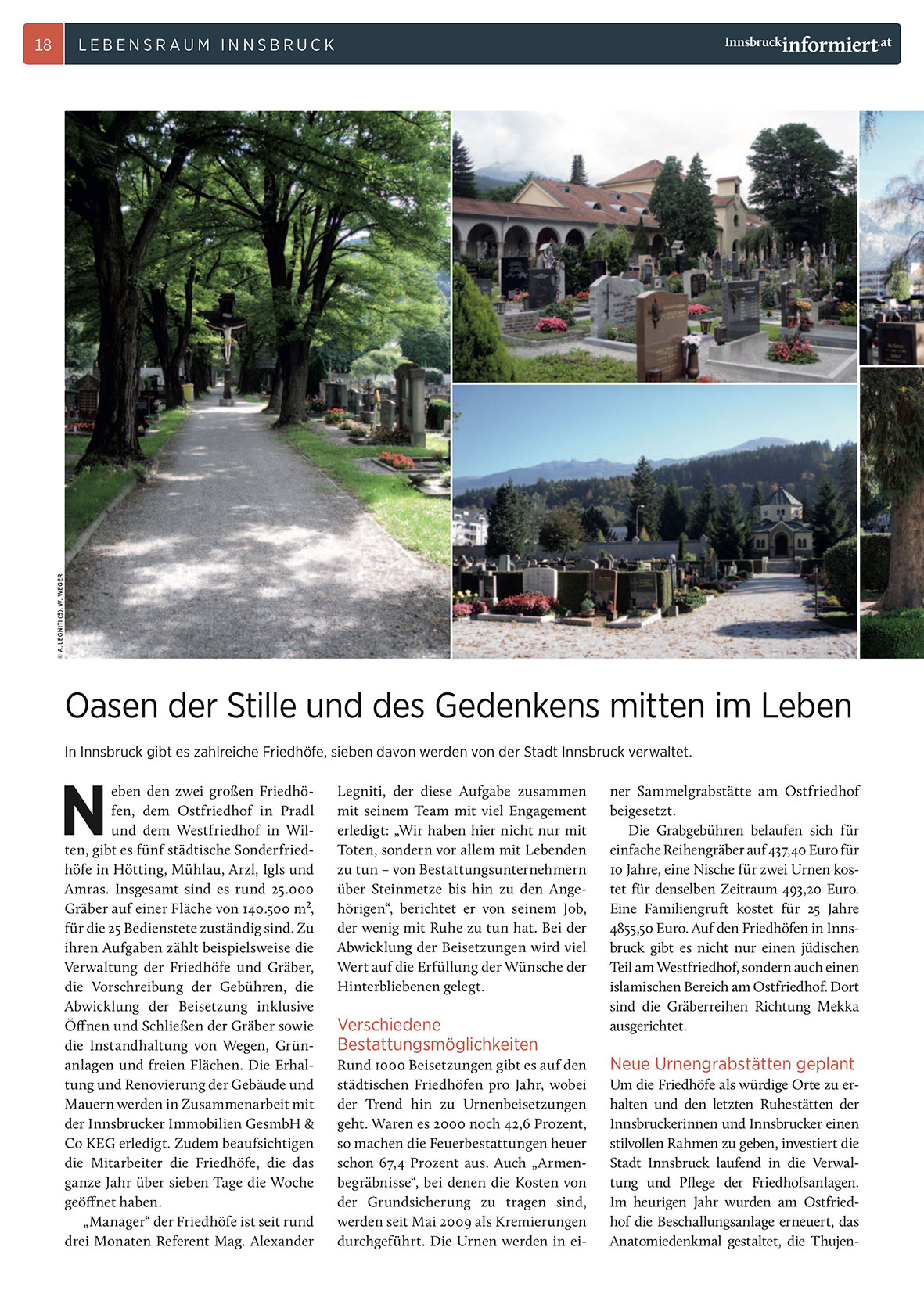 Stadt Innsbruck laufend in die Verwaltung und Pflege der Friedhofsanlagen.