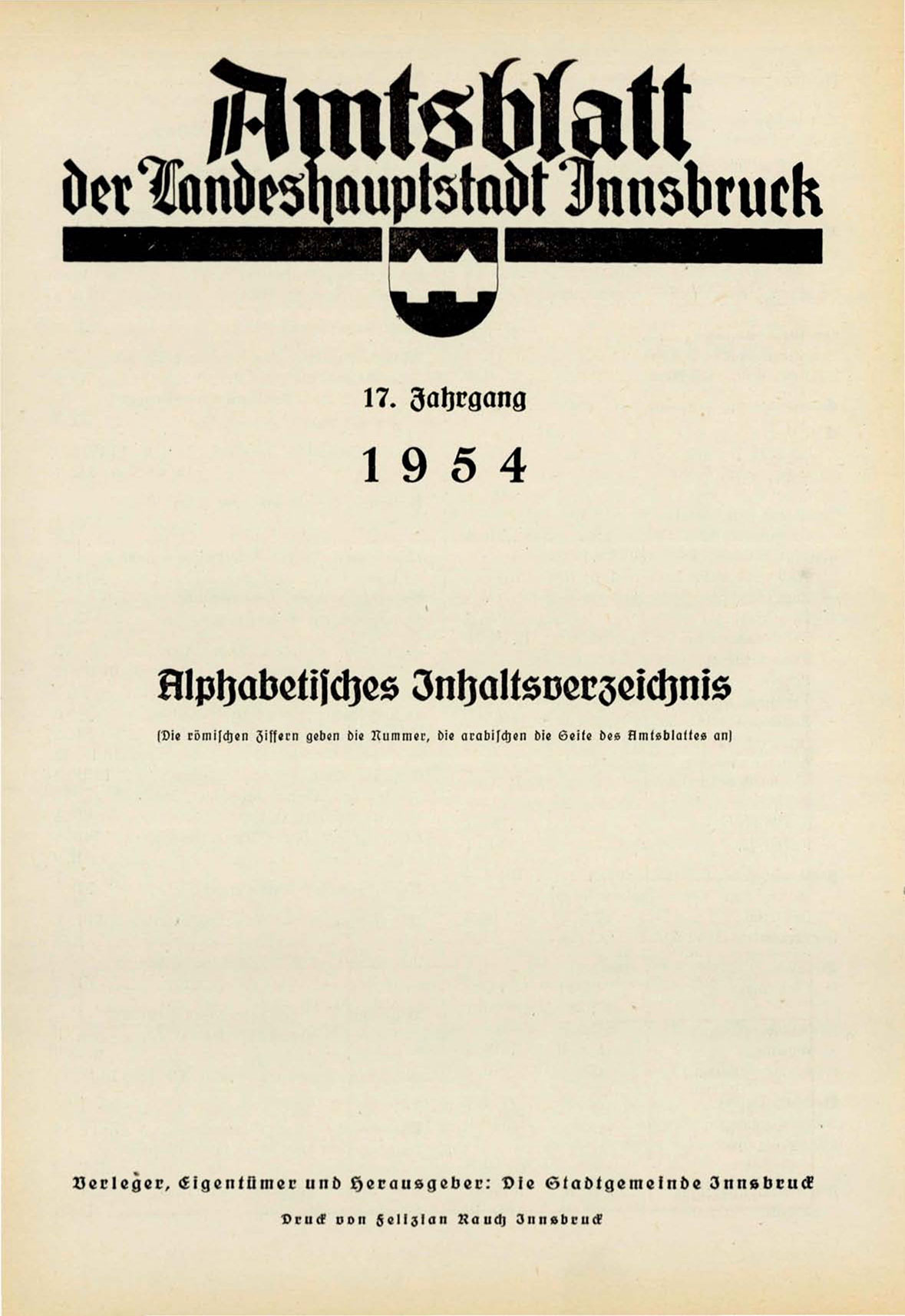 Verleger, sigentiimer und Herausgeber: Vie Stadtgemeinde Innsbruck