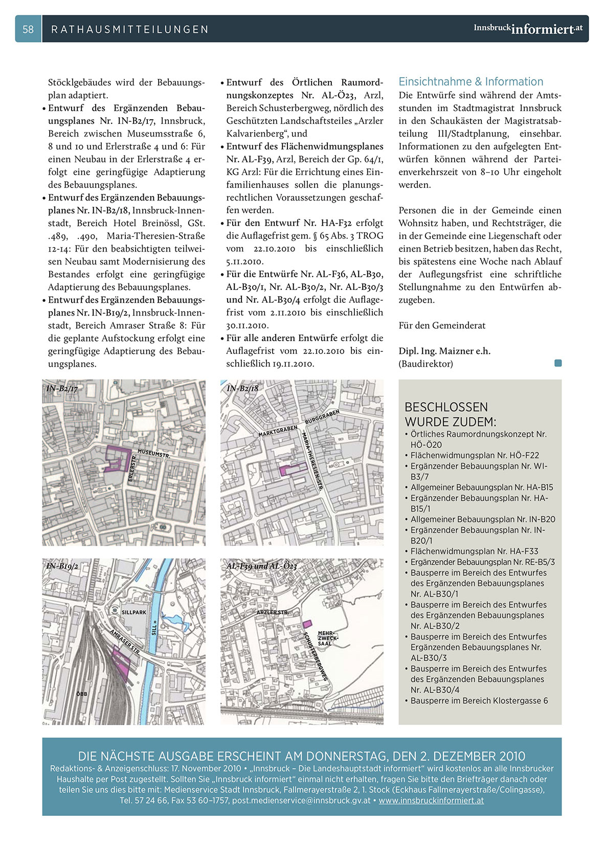 Redaktions- & Anzeigenschluss: 17. November 2010 • „Innsbruck – Die Landeshauptstadt informiert“ wird kostenlos an alle Innsbrucker