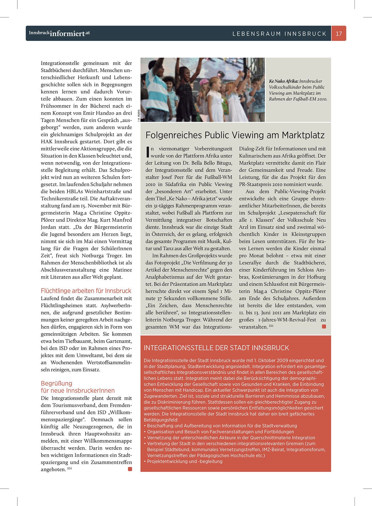 werden. Die Integrationsstelle der Stadt Innsbruck hat daher ein breit gefächertes