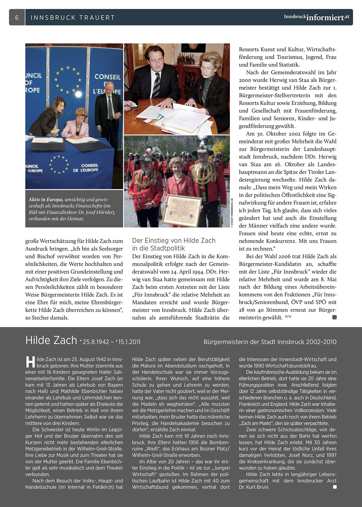Wirtschaft“ gestoßen. Im Rahmen der politischen Laufbahn ist Hilde Zach mit 40 zum