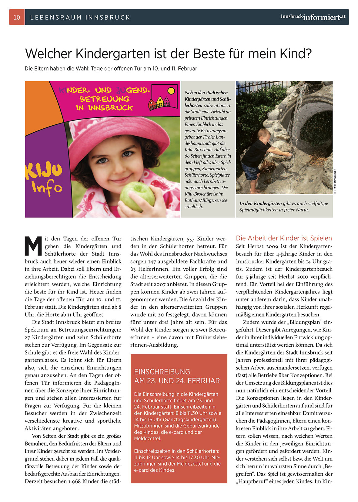 gesamte Betreuungsangebot der Tiroler Landeshauptstadt gibt die