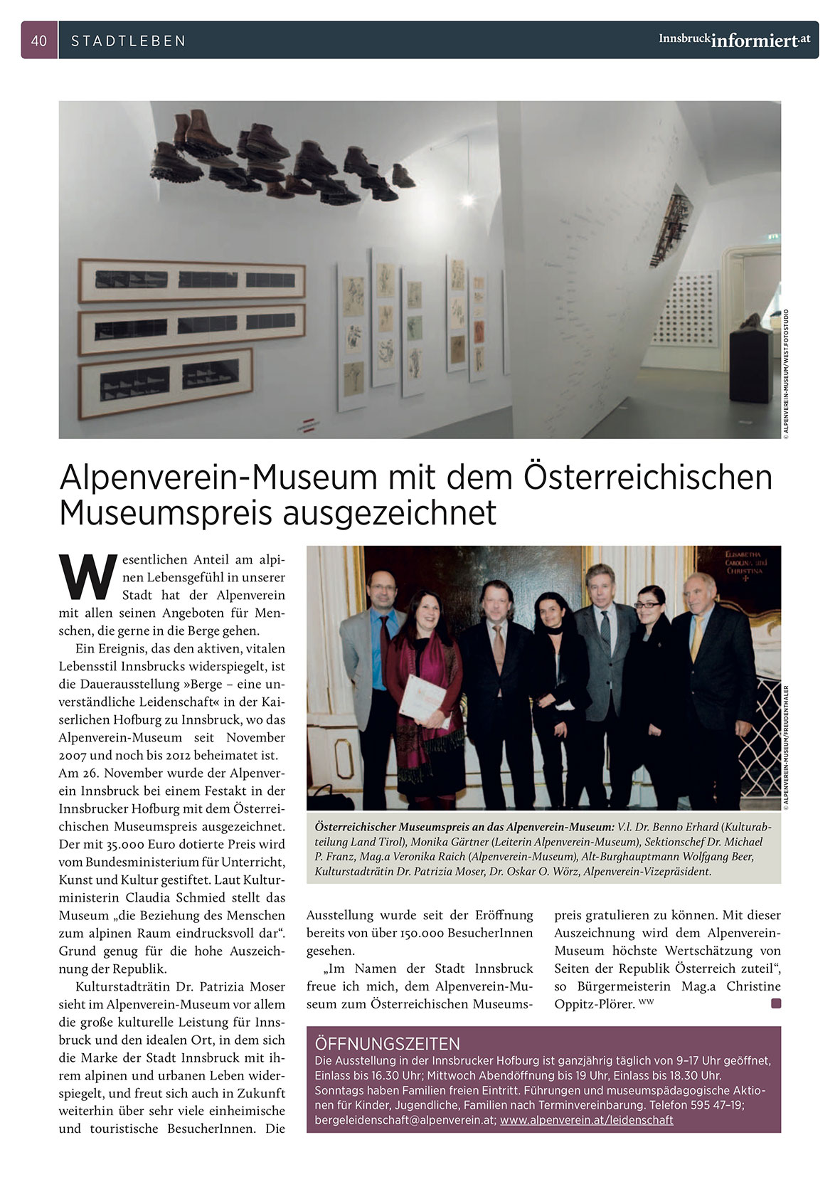Auszeichnung wird dem AlpenvereinMuseum höchste Wertschätzung von