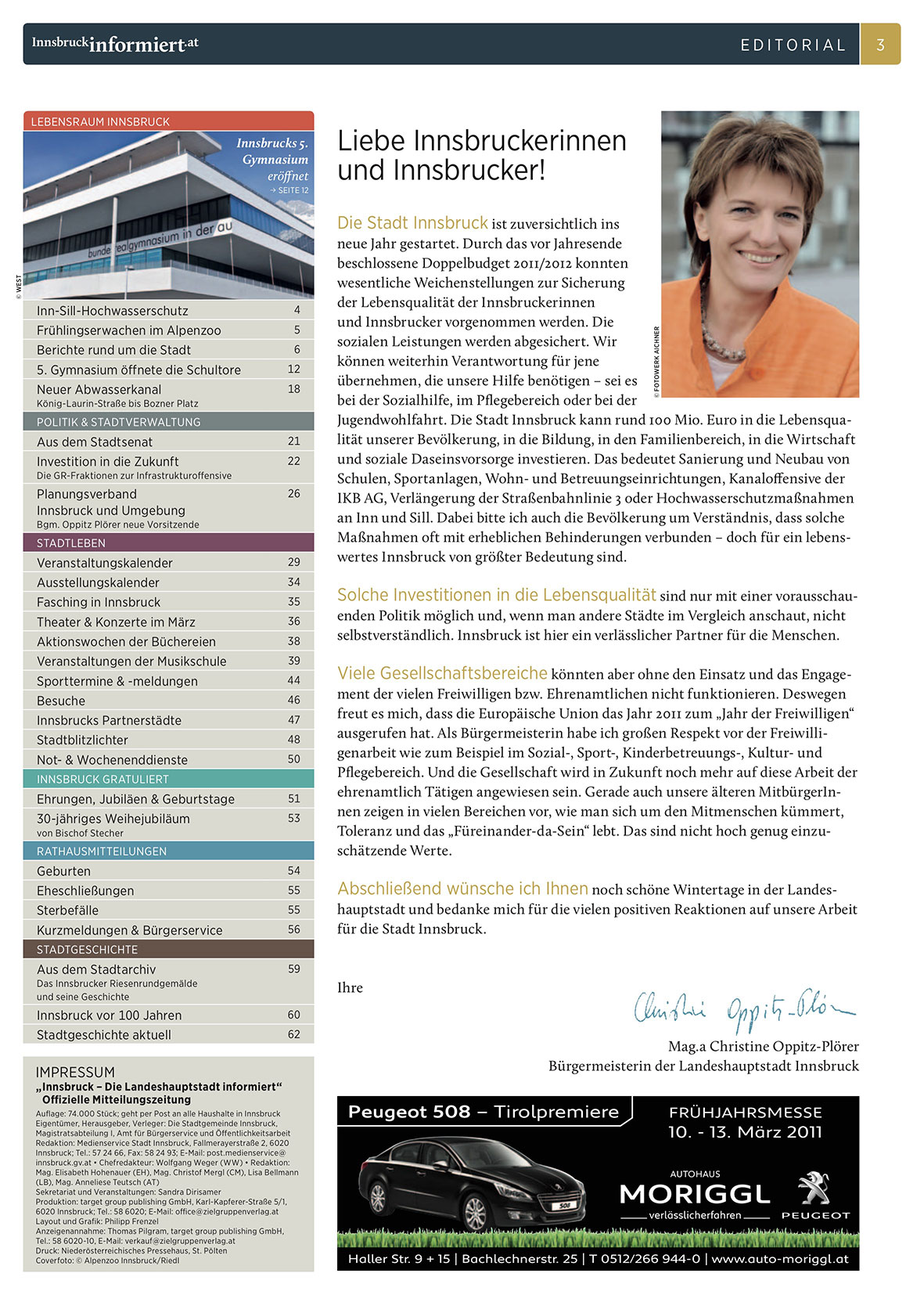 Auflage: 74.000 Stück; geht per Post an alle Haushalte in Innsbruck