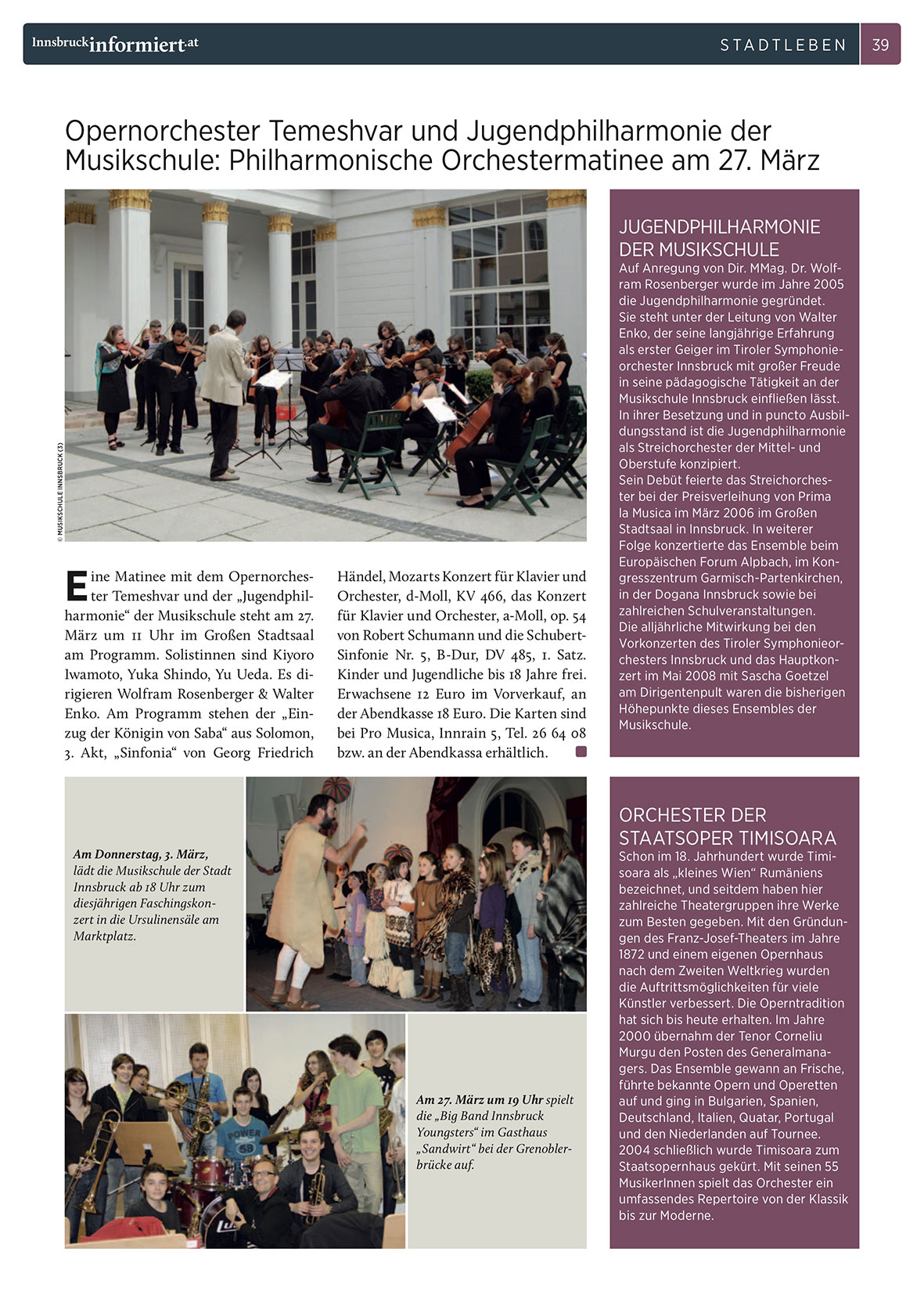 ine Matinee mit dem Opernorchester Temeshvar und der „Jugendphilharmonie“ der Musikschule steht am 27.